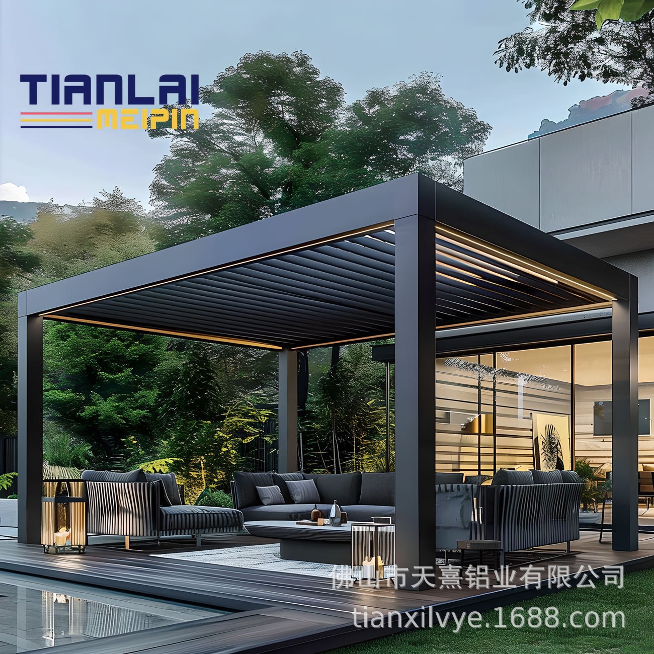 アルミ合金電動フリップルーバーパビリオンオーニングスマートモバイル格納式サンルームパーゴラクロスボーダー限定