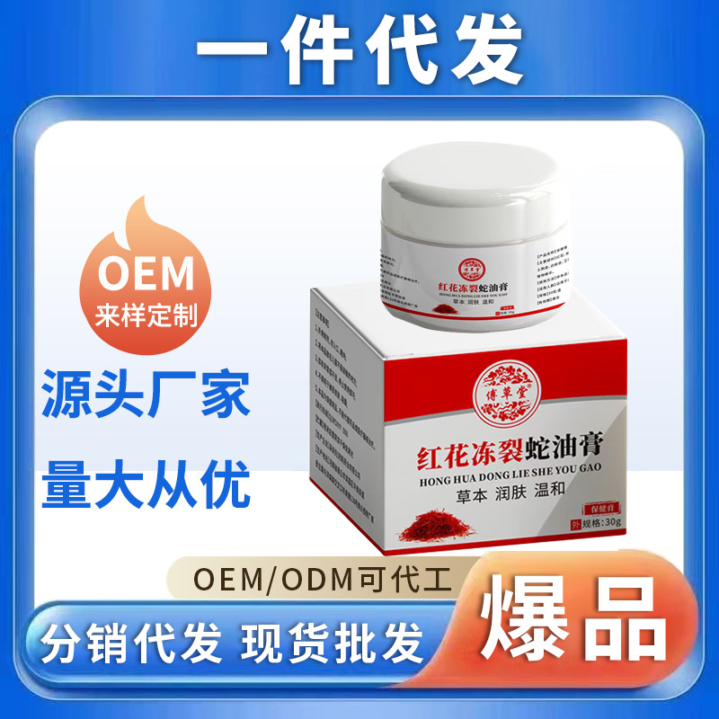 一件代发抖音傅草堂红花冻裂蛇油膏润肤霜 冬季滋润护手皲裂膏