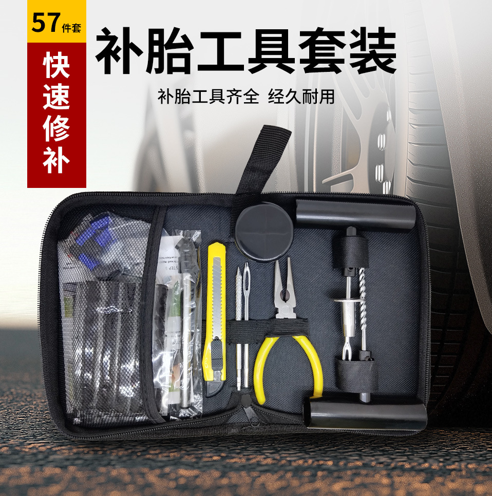 跨境热销新款70pc应急补胎工具套装包 汽车摩托车真空胎快速修补