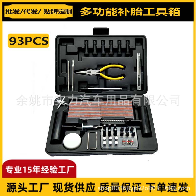 跨境专供93件套高档补胎工具箱摩托车修车工具包快速汽车补胎工具
