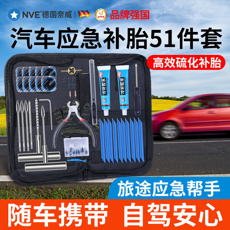 57ピース緊急タイヤ修理ツール布カバーセット、旅行用自動運転に必要な真空タイヤパンク修理ツールキット