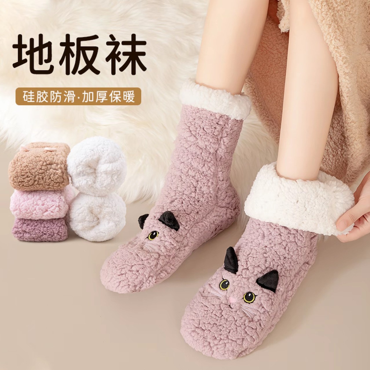 女士室内地板袜冬季睡眠暖脚宝加厚防滑羊羔绒袜子加绒保暖雪地袜