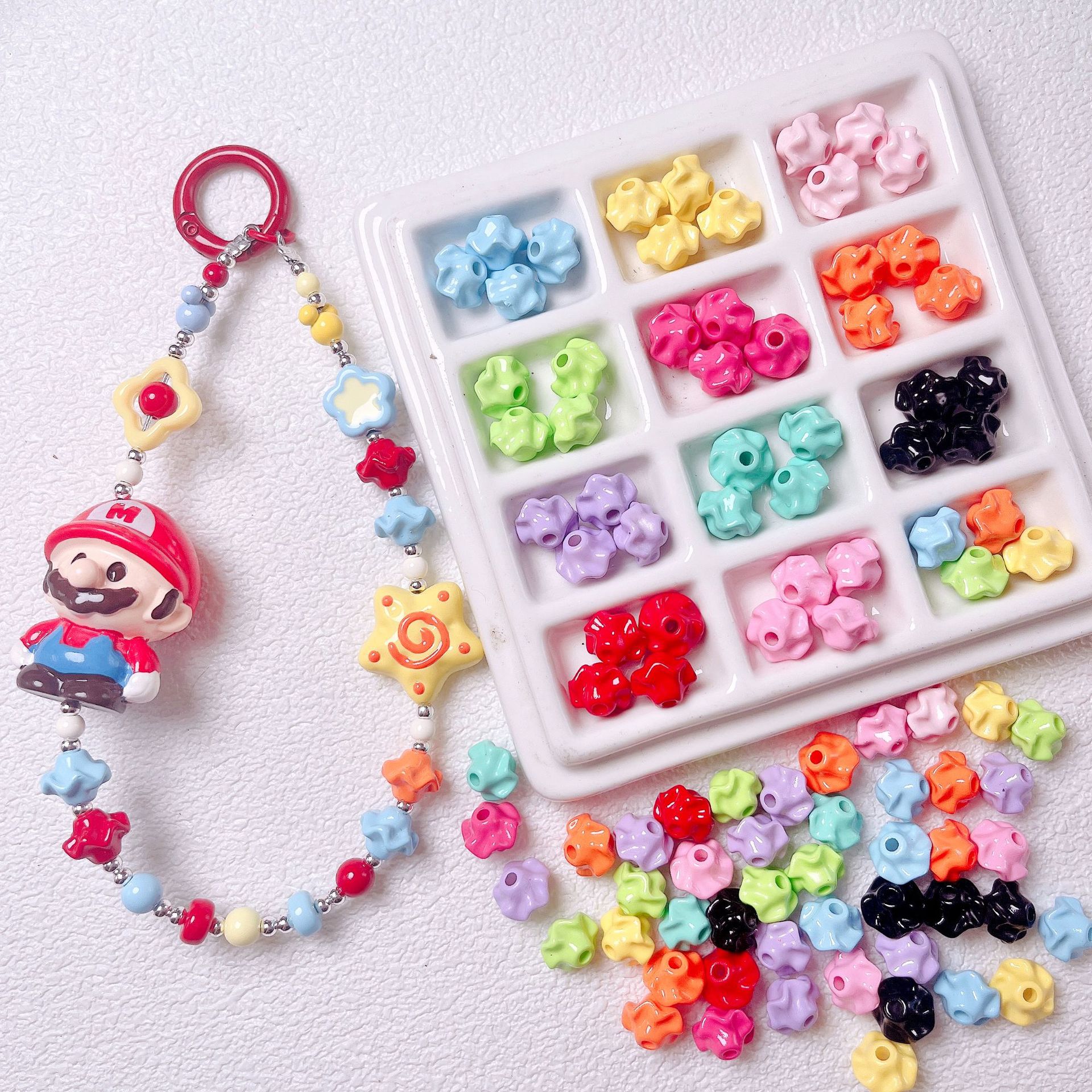 高品UV光沢マカロン実色五角星散珠diy携帯チェーンキーホルダーアクセサリー材料