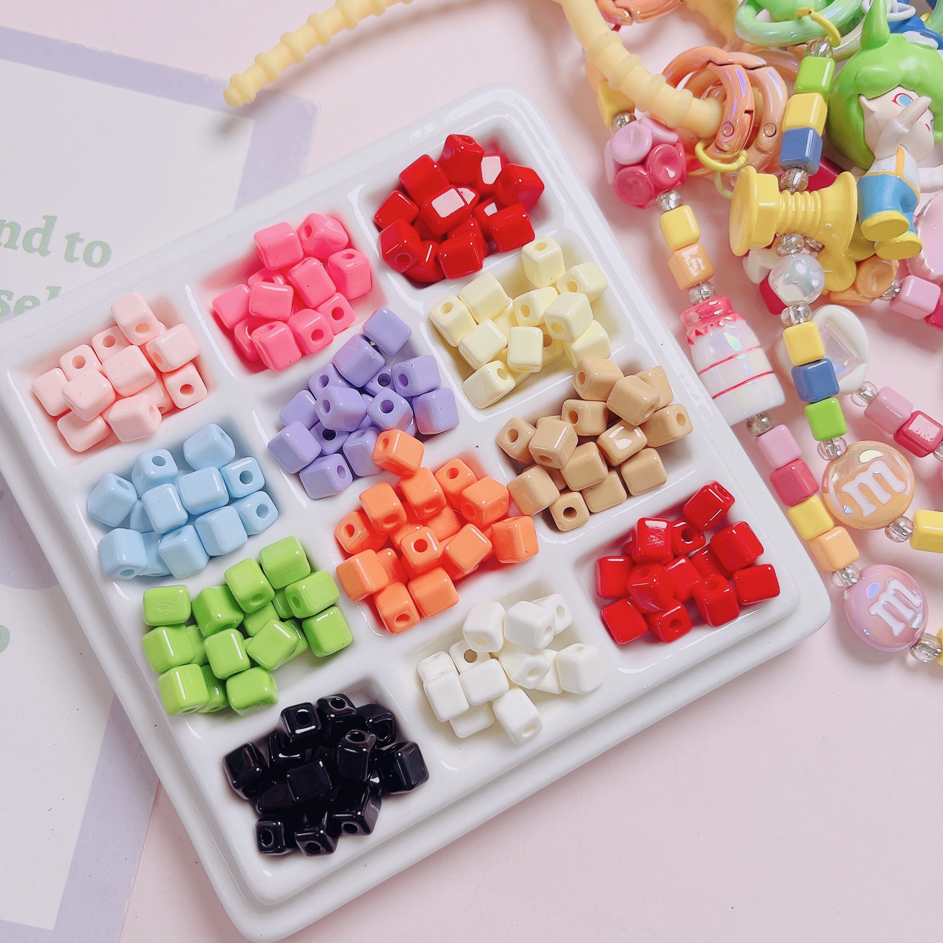 マカロン系塗装ブロック玉アクリルビーズ手作りdiy携帯チェーンビーズ材料部品