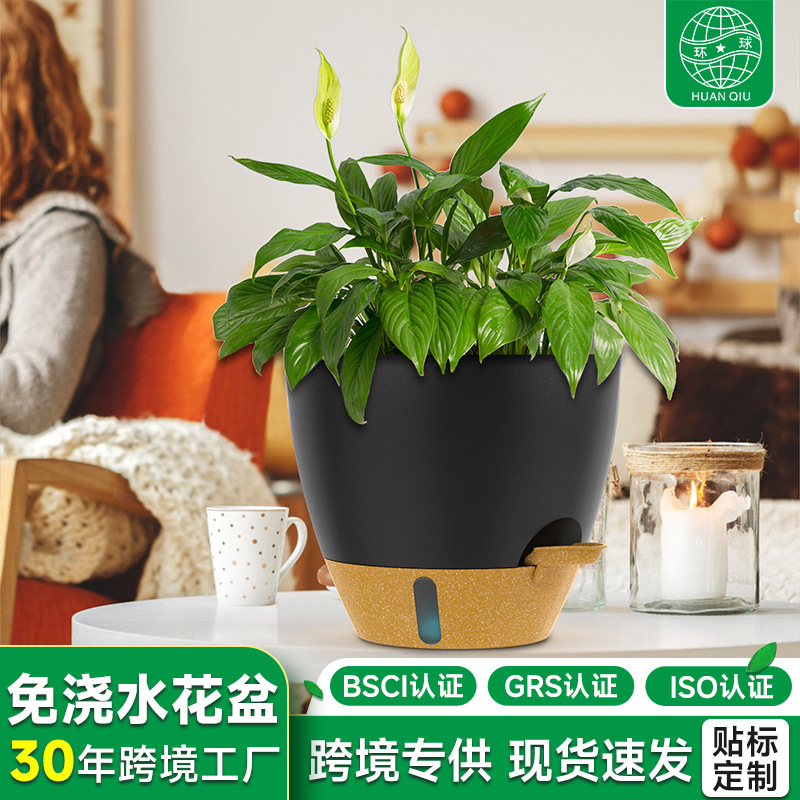 メーカー直販クロスボーダー電気商可視水位側方水自己吸水プラスチックベランダ庭植木鉢怠け者新