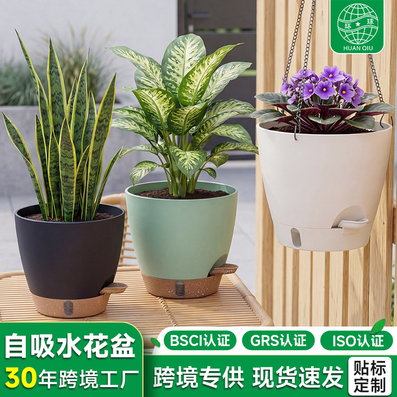 メーカー直販アマゾン電気商側方水怠惰人自己吸水プラスチック庭緑羅吊蘭植木鉢