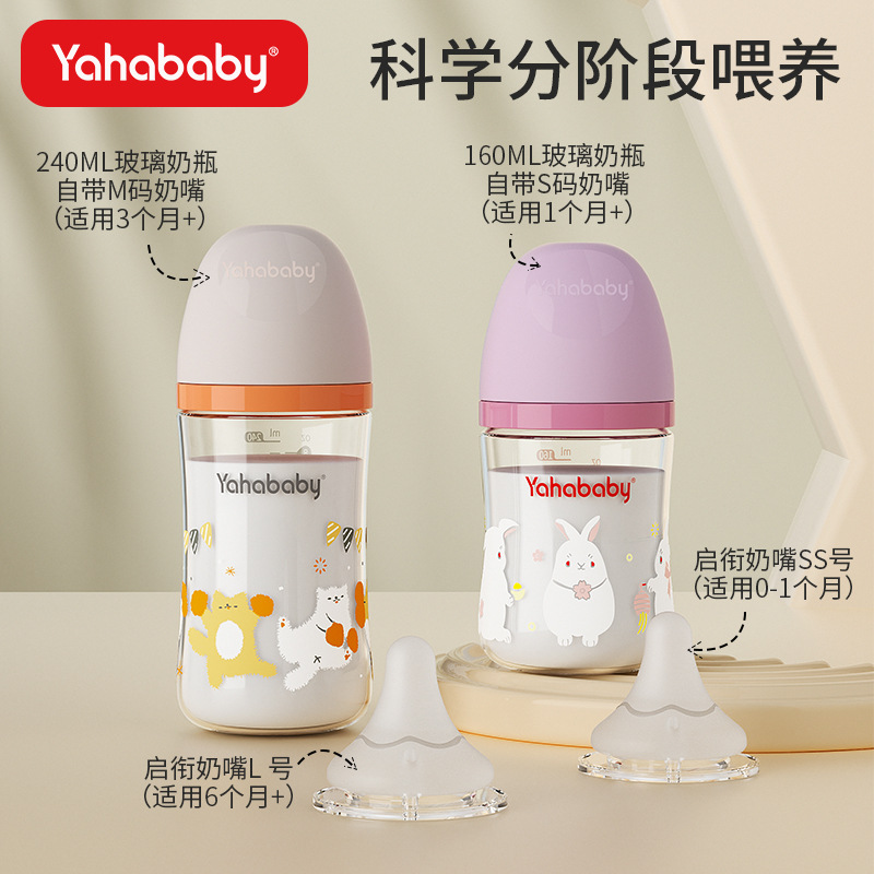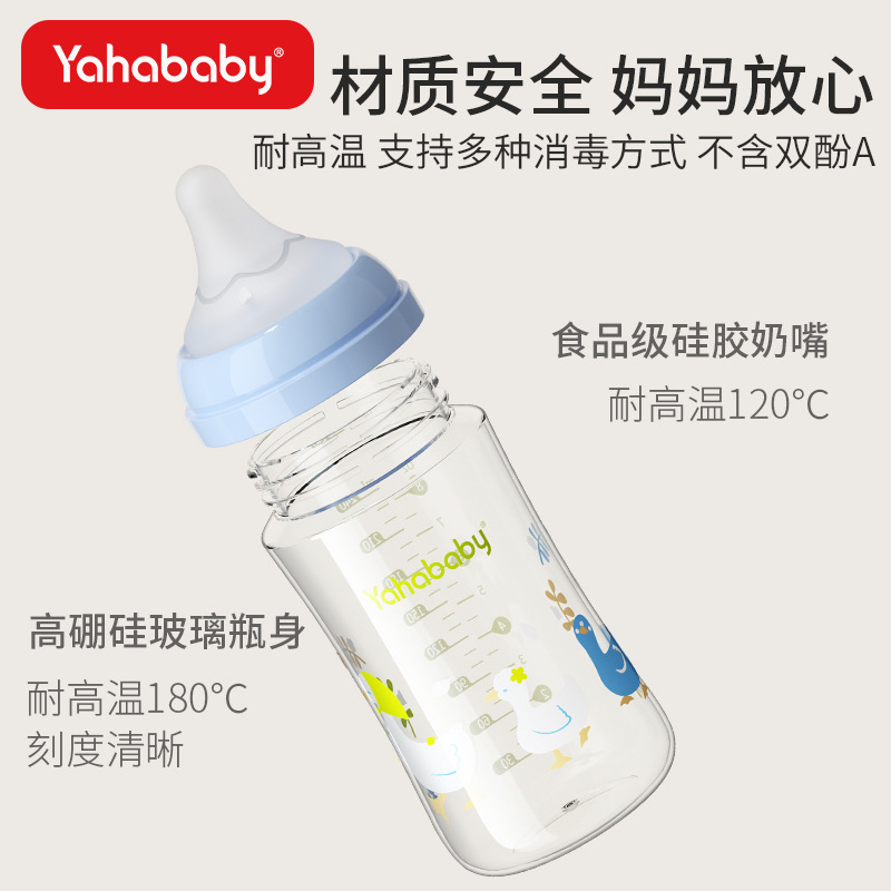 Yahbaby彩色高ホウ素シリコンガラス哺乳瓶初生乳児哺乳瓶は母乳の膨張防止を真似て高温消毒できる