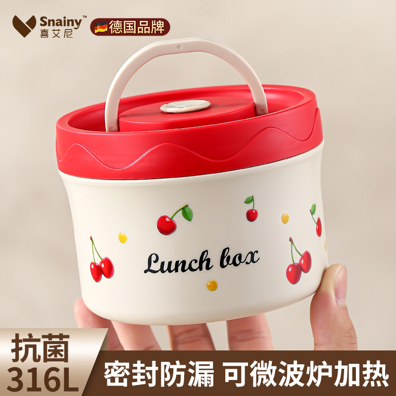 316ステンレス製 電子レンジ対応スープボウル 蓋付き サラリーマンや学生向けの特別弁当箱 チェリー保温弁当箱