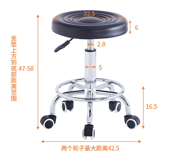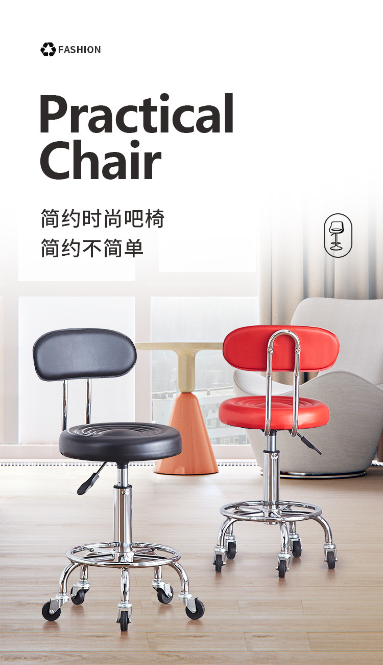 升降吧台椅小滑凳旋转高脚圆盘酒吧靠背美容椅轴承滑轮大工椅跨境