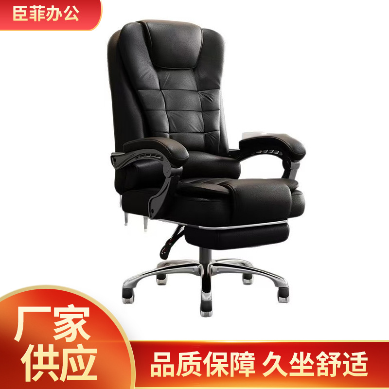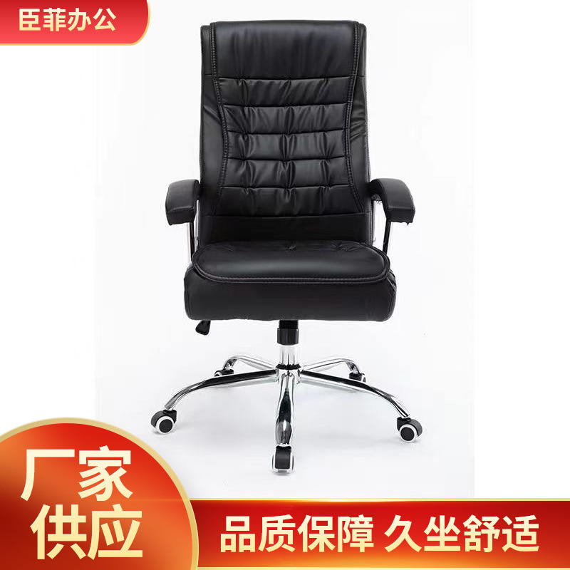オフィスレザーチェアリクライニングチェアホームオフィスチェアリフティング回転椅子ボスチェアブラック会議椅子