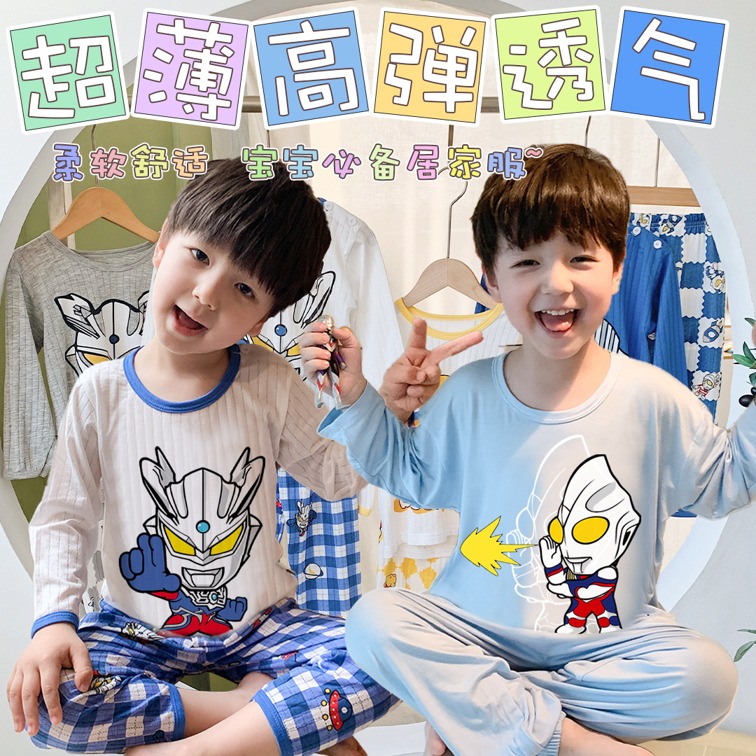 男童睡衣儿童睡衣夏季薄款纯棉宝宝家居服套装莫代尔空调服中大童