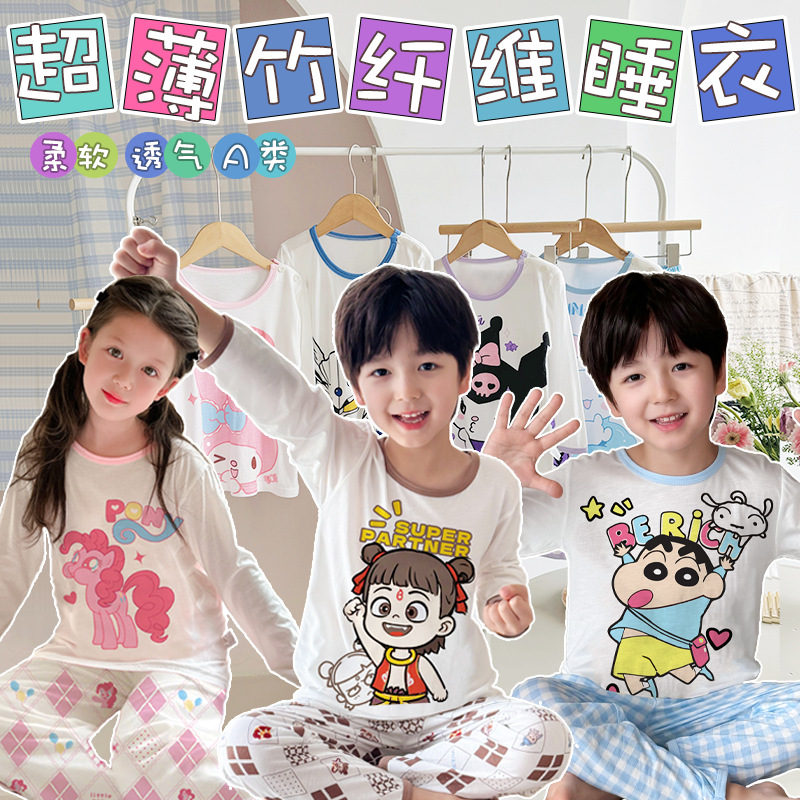 2025夏子供パジャマセット男女子供家庭服竹繊維赤ちゃん空調服セット超薄型タイプ