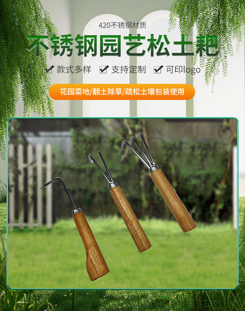山菜掘り、花と野菜の栽培、屋外の庭の除草や土のほぐしに最適なステンレス製の小さな園芸用鍬セットです。