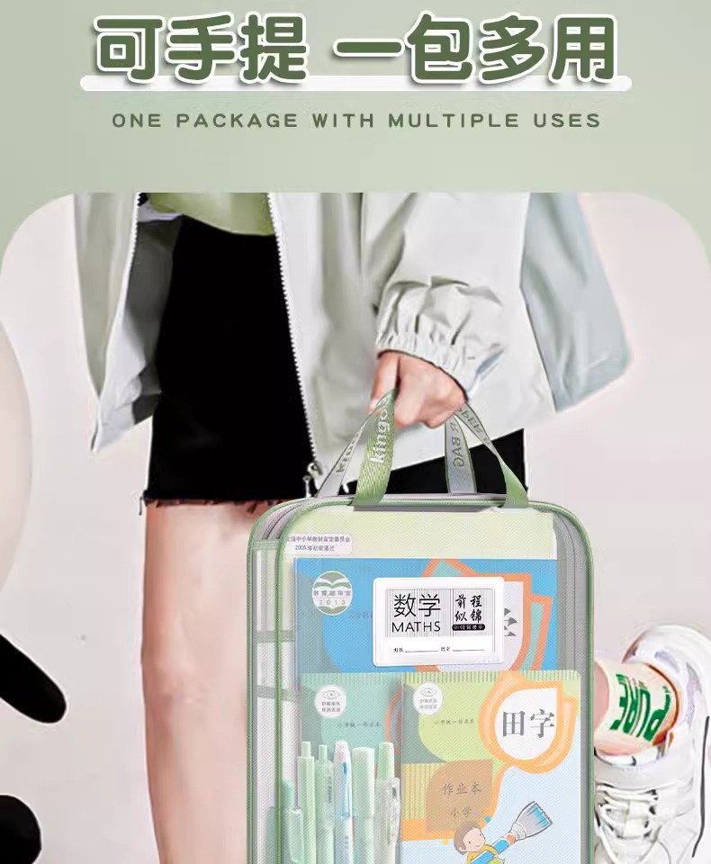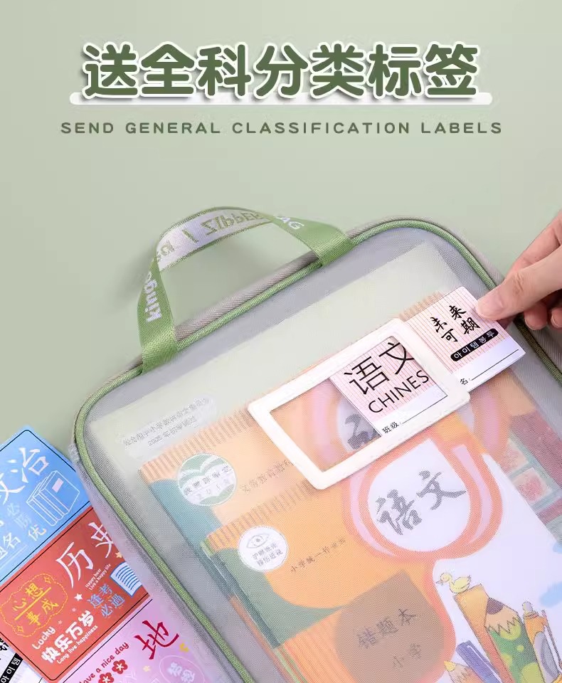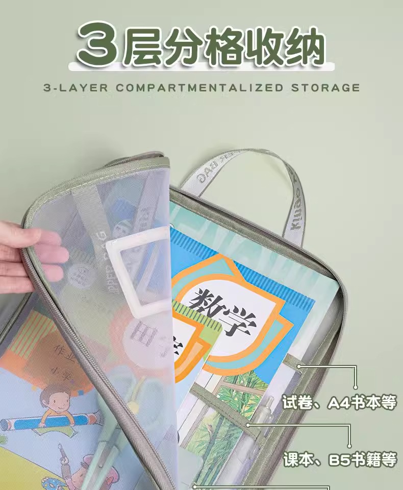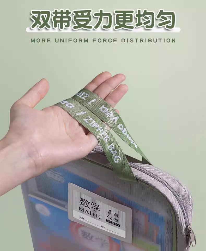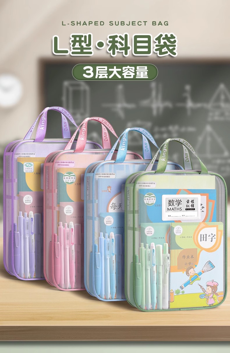L字型科目分類バッグ、ポータブル透明書類バッグ、ジッパーメッシュ、大開口、学生用試験用ブックバッグ