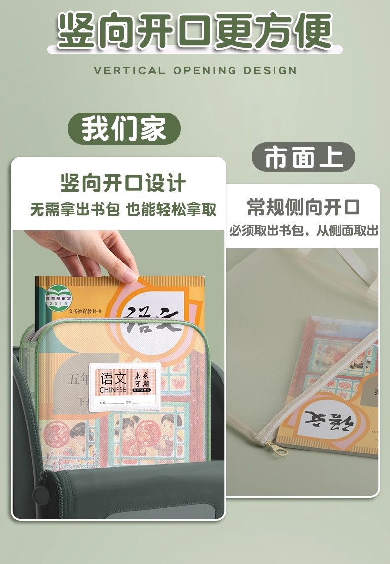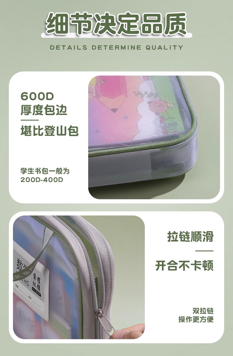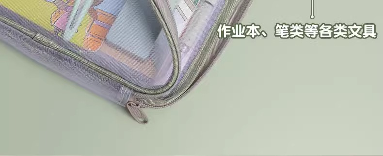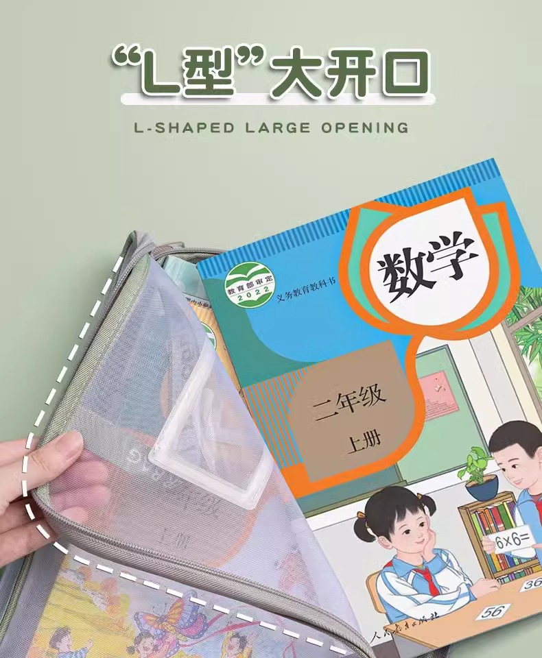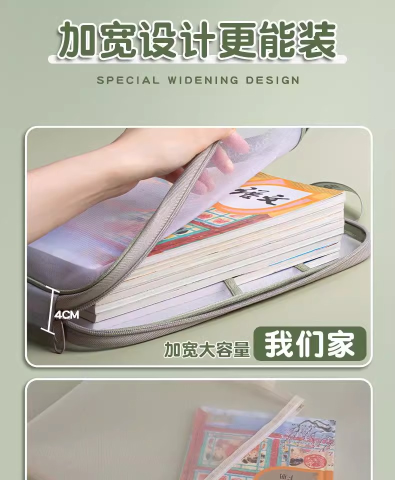 L字型科目分類バッグ、ポータブル透明書類バッグ、ジッパーメッシュ、大開口、学生用試験用ブックバッグ