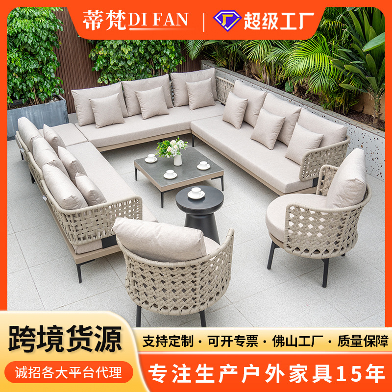ライト高級ヴィラ中庭籐ソファ組み合わせB&Bホテルテラスガーデン北欧ソファ家具屋外ソファ