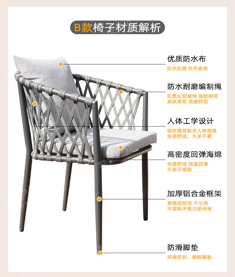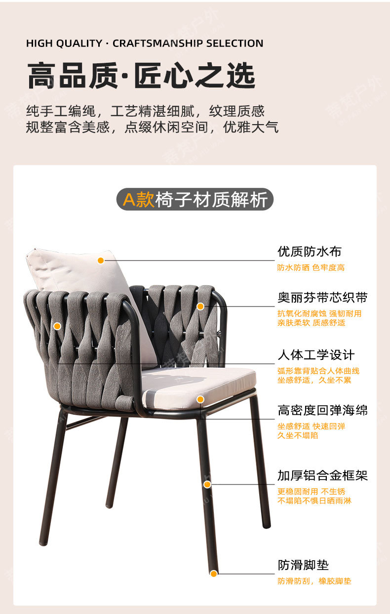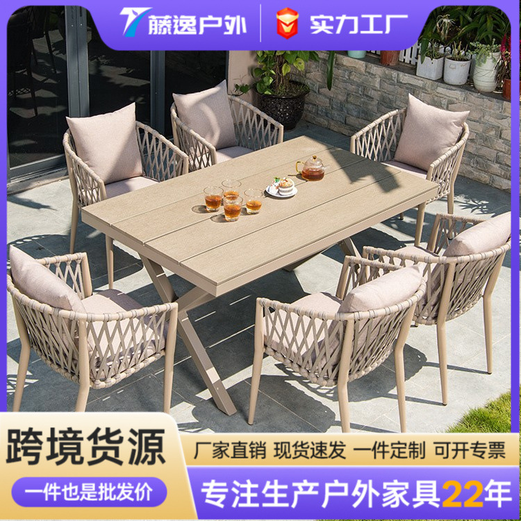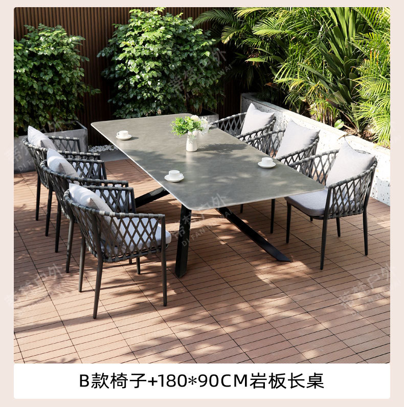 屋外北欧ロックプレートダイニングテーブルと椅子の組み合わせレジャーひもチェアホテル中庭屋外テラスガーデン屋外テーブルと椅子