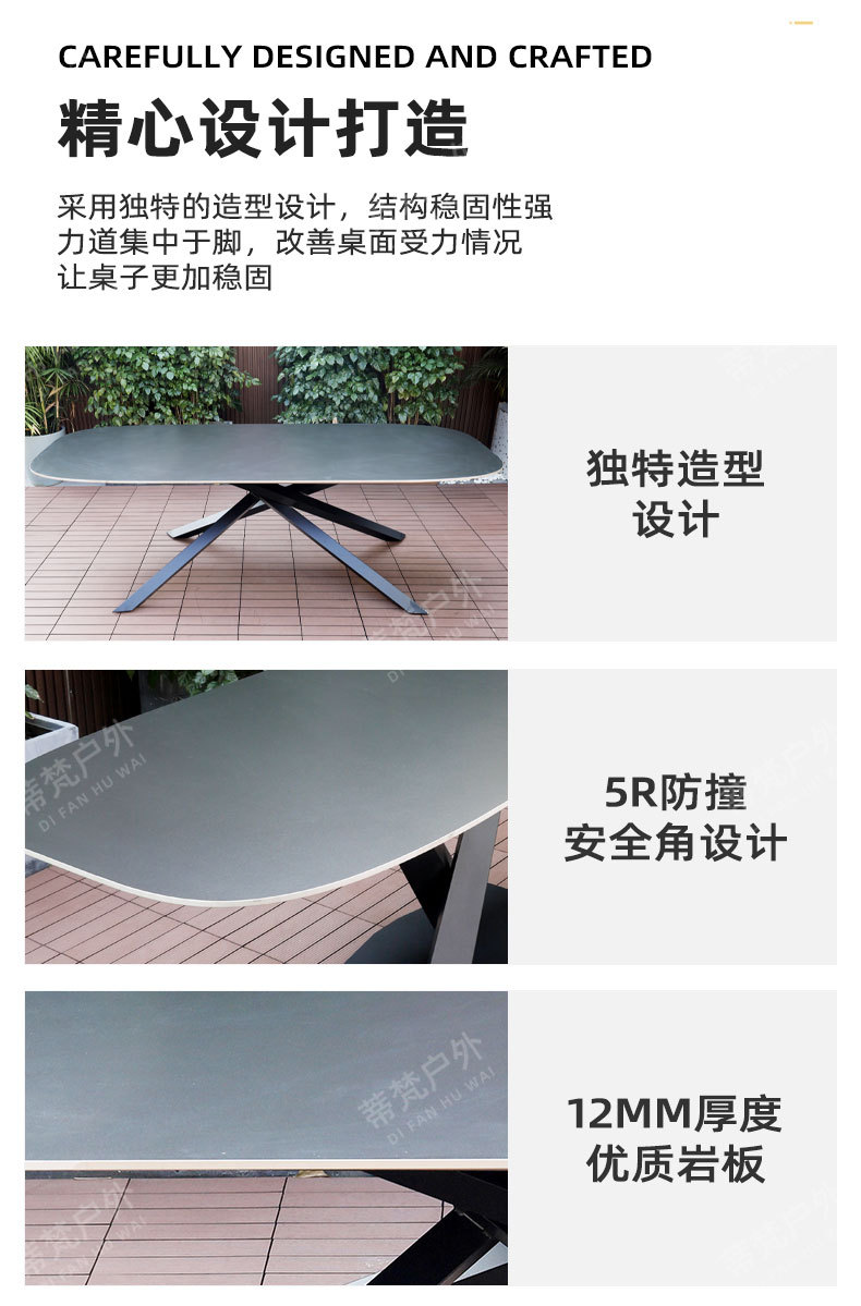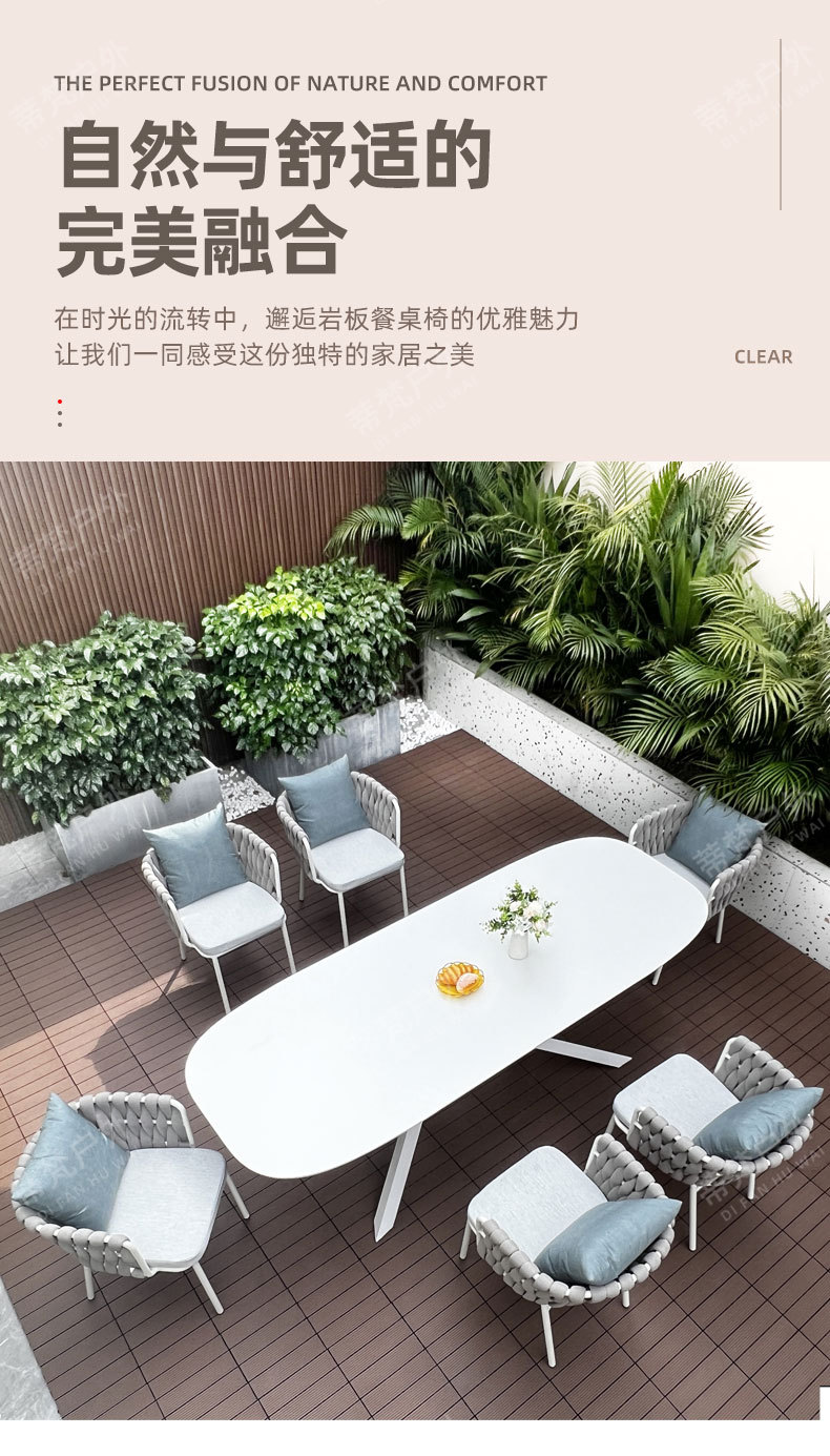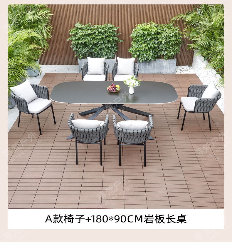 高端庭院岩板餐桌椅别墅室外花园露台编织带桌椅组合家具户外桌椅