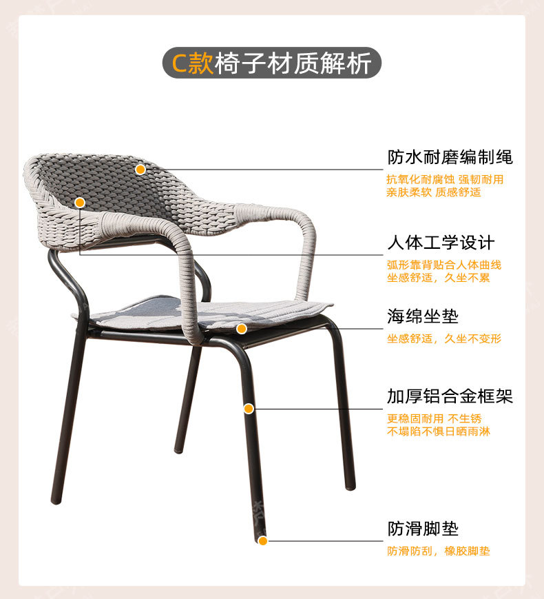 耐瑞北欧户外桌椅铝合金露天花园民宿庭院组合餐桌阳台藤椅桌藤编