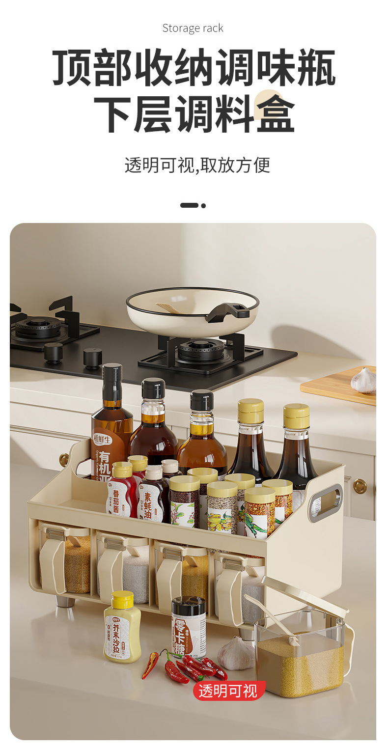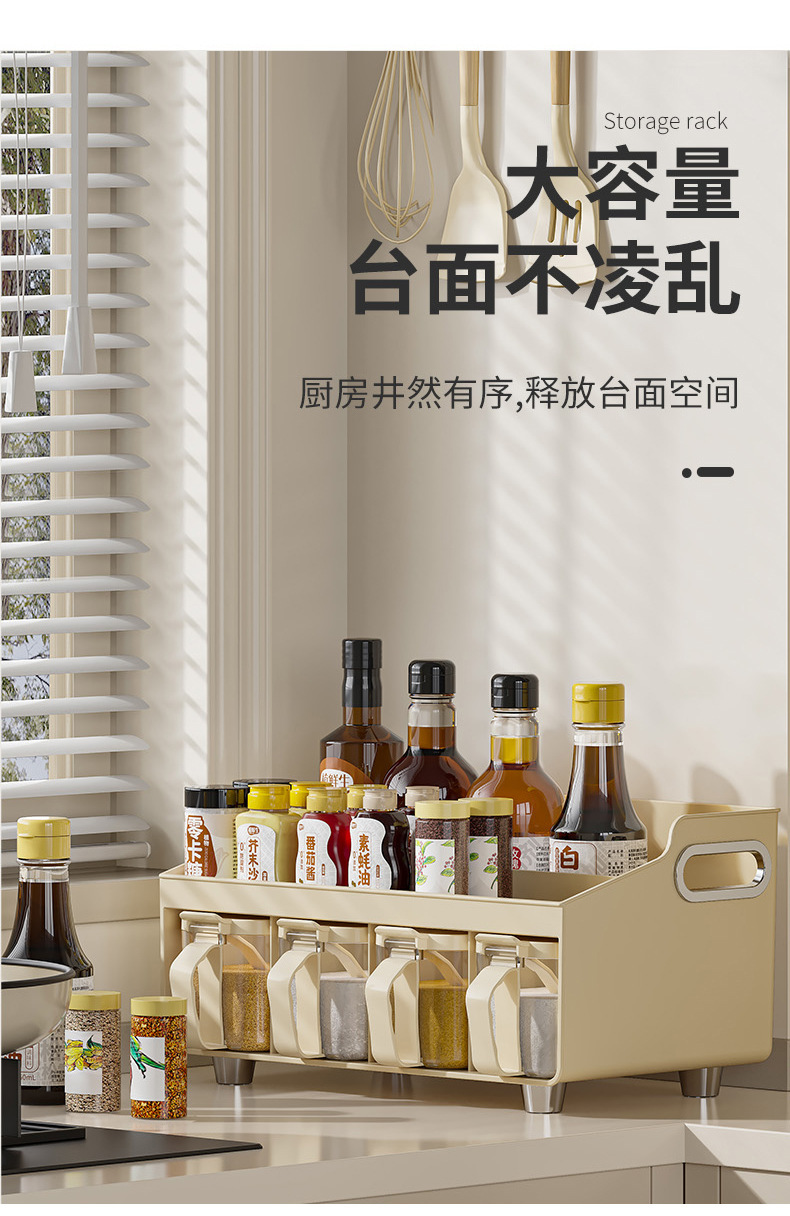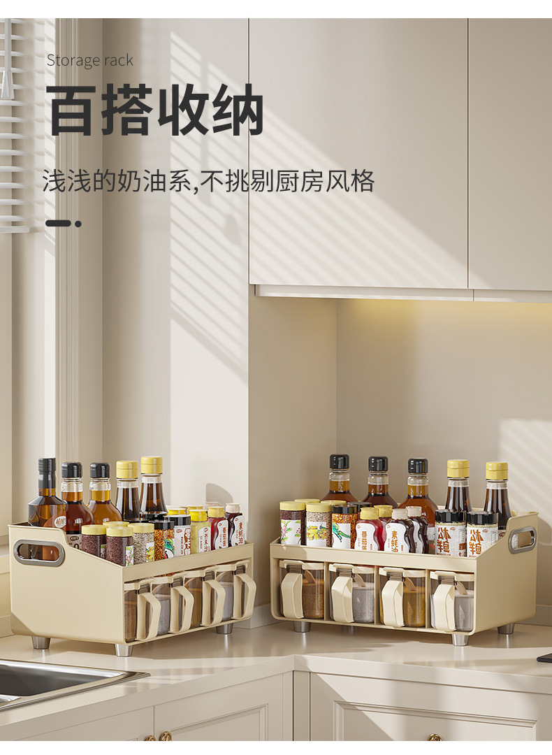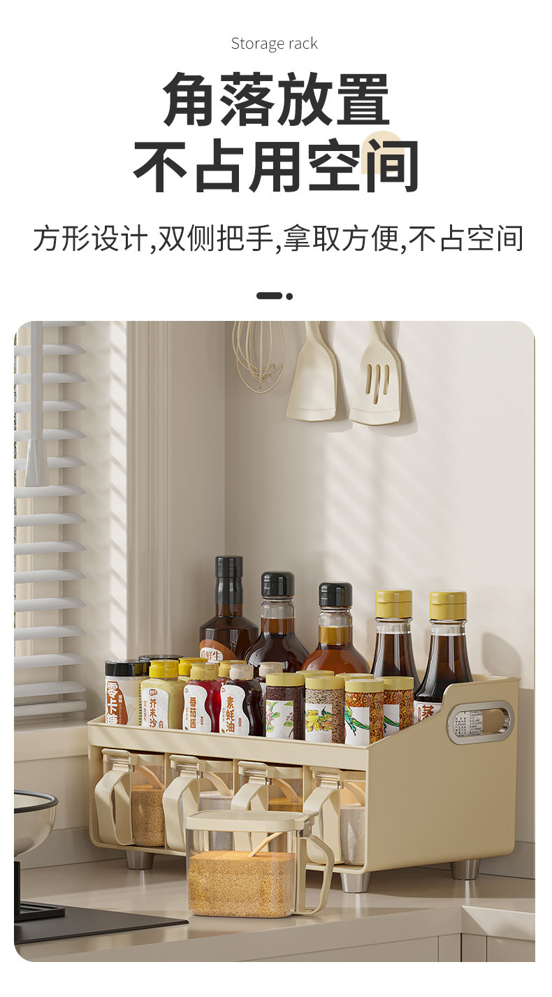 調味料ボックス 2025 新しいライト高級クリームスタイルキッチンホームカウンタートップ調味料瓶収納ラック多機能収納ラック