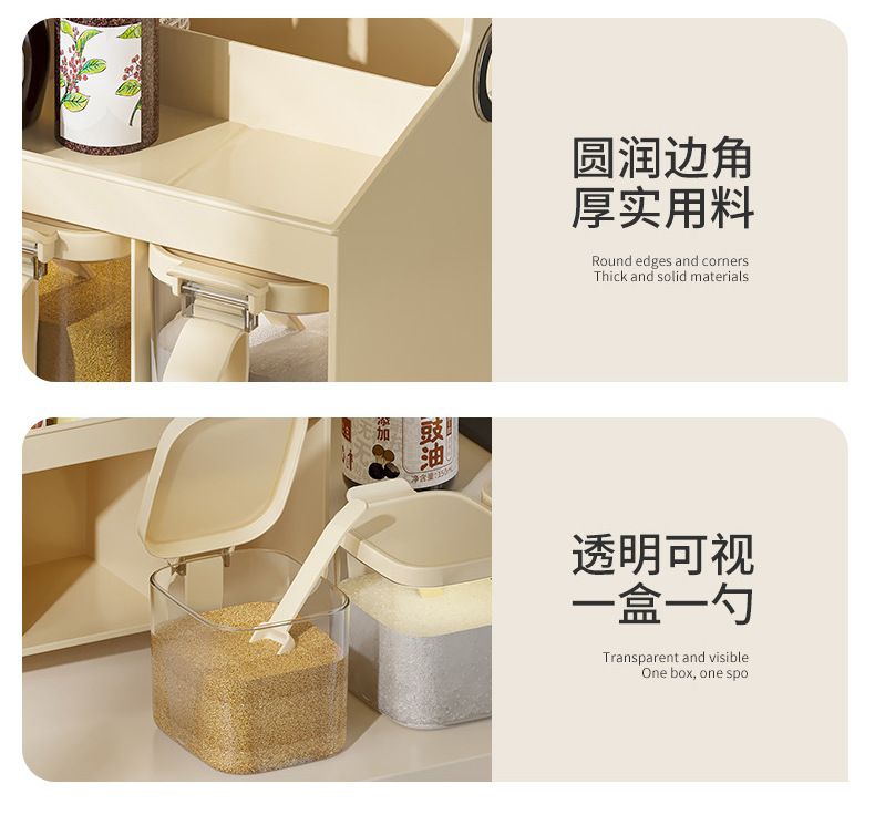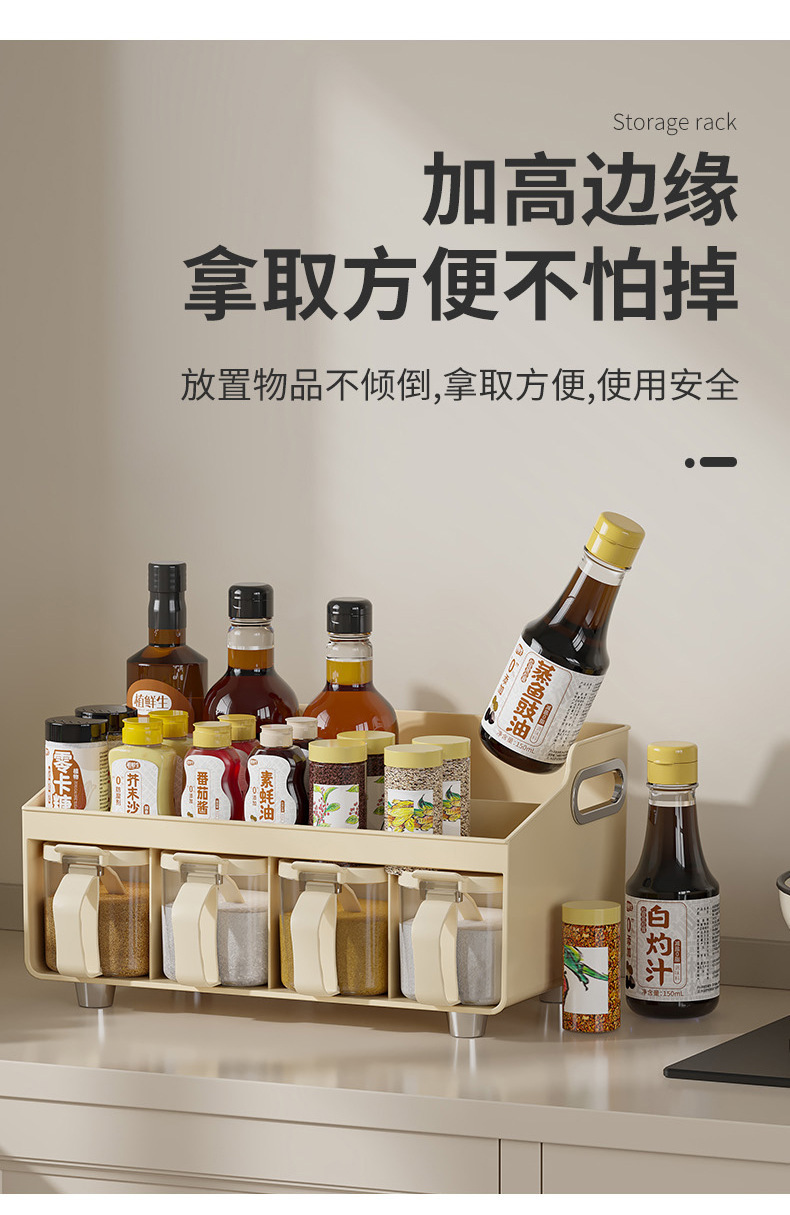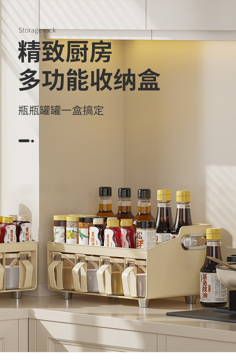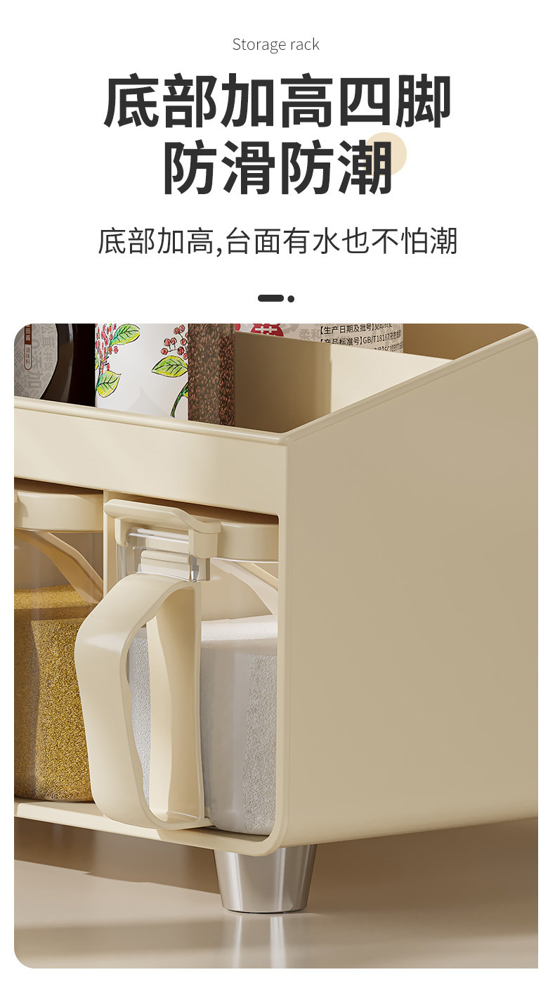 調味料ボックス 2025 新しいライト高級クリームスタイルキッチンホームカウンタートップ調味料瓶収納ラック多機能収納ラック