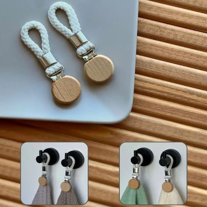 クロスボーダーパンチフリーコットンロープバスルーム多機能タオルクリップキッチン収納小型クリップブナ材ラウンドヘッド防錆