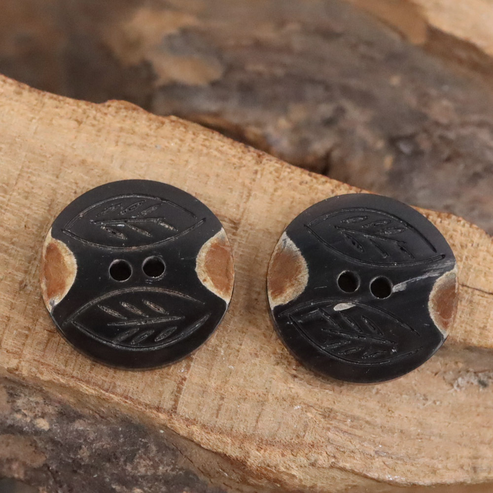 叶子纹理感斜面牛角黑色设计感复古牛角皮衣大衣外套高级西服纽扣
