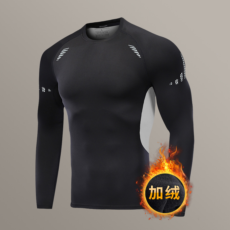 冬のランニングスーツの男性とベルベットの保温下着の速乾レオタード運動フィットネススキー訓練高弾