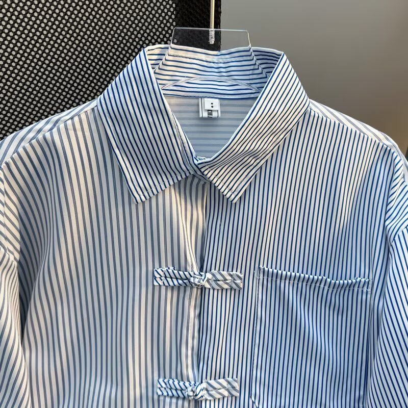 デザイン感のある大衆のユニークなストライプのつなぎ合わせのシャツの男女の秋のファッションブランドの国風の新しい中国式の長袖の上着