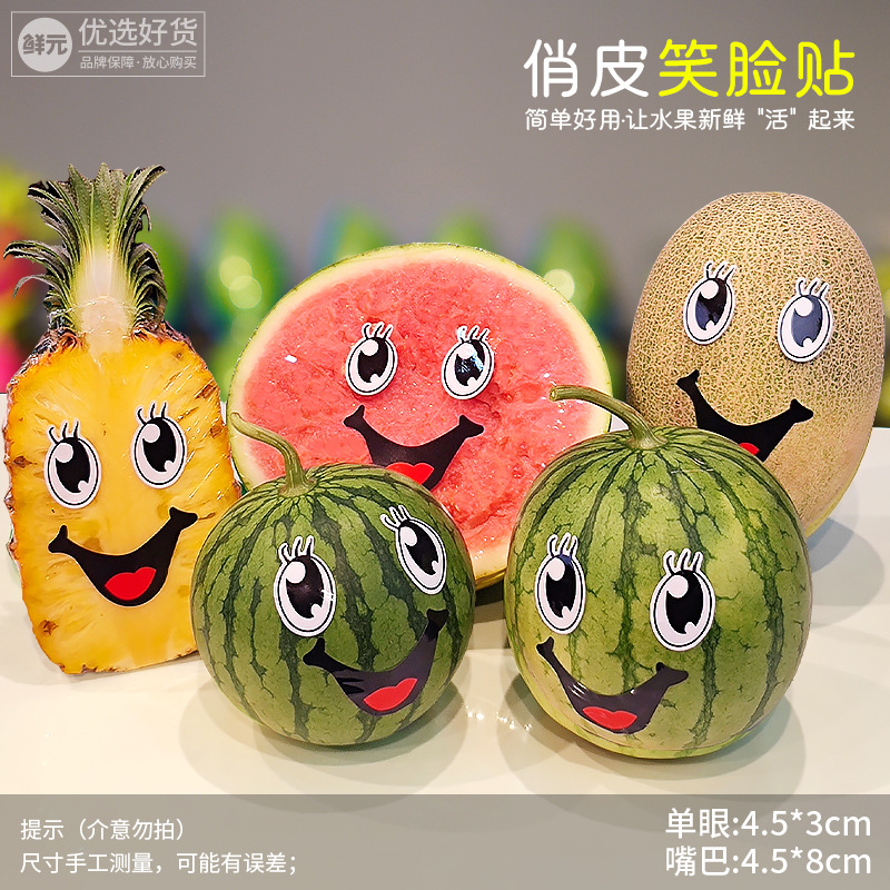 クリエイティブ漫画スマイリースイカステッカーフルーツラベルメロンパイナップル表現笑顔装飾ステッカーユニバーサル