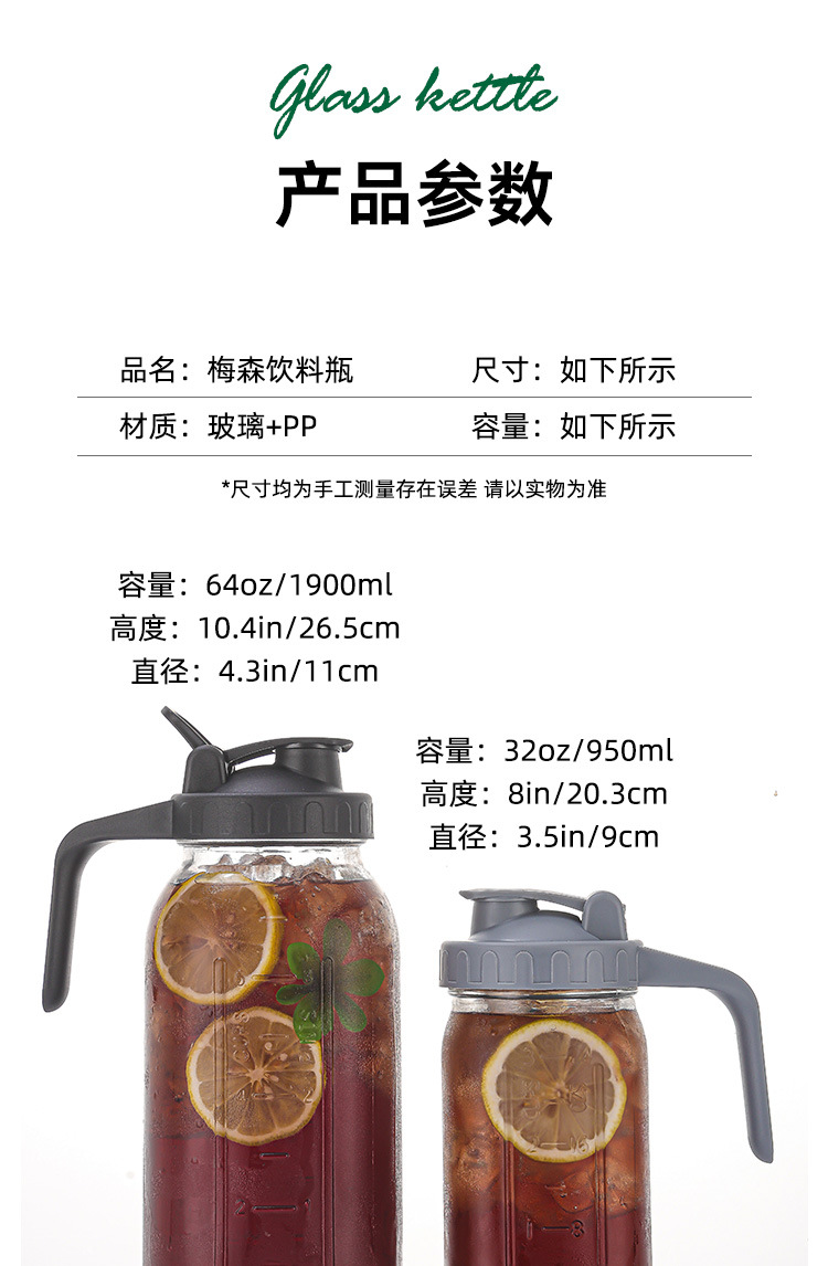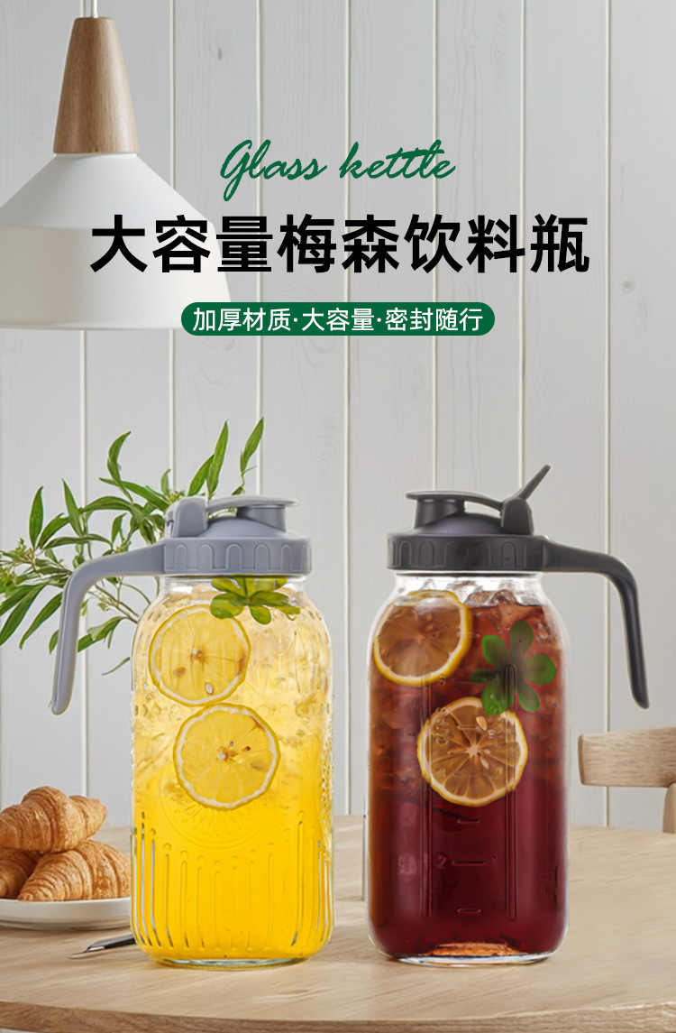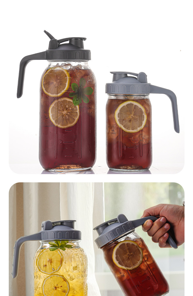クロスボーダー直供64ozメイソン缶アマゾン32ozガラス冷水ポット広口ハンドル付日茶コーヒー缶