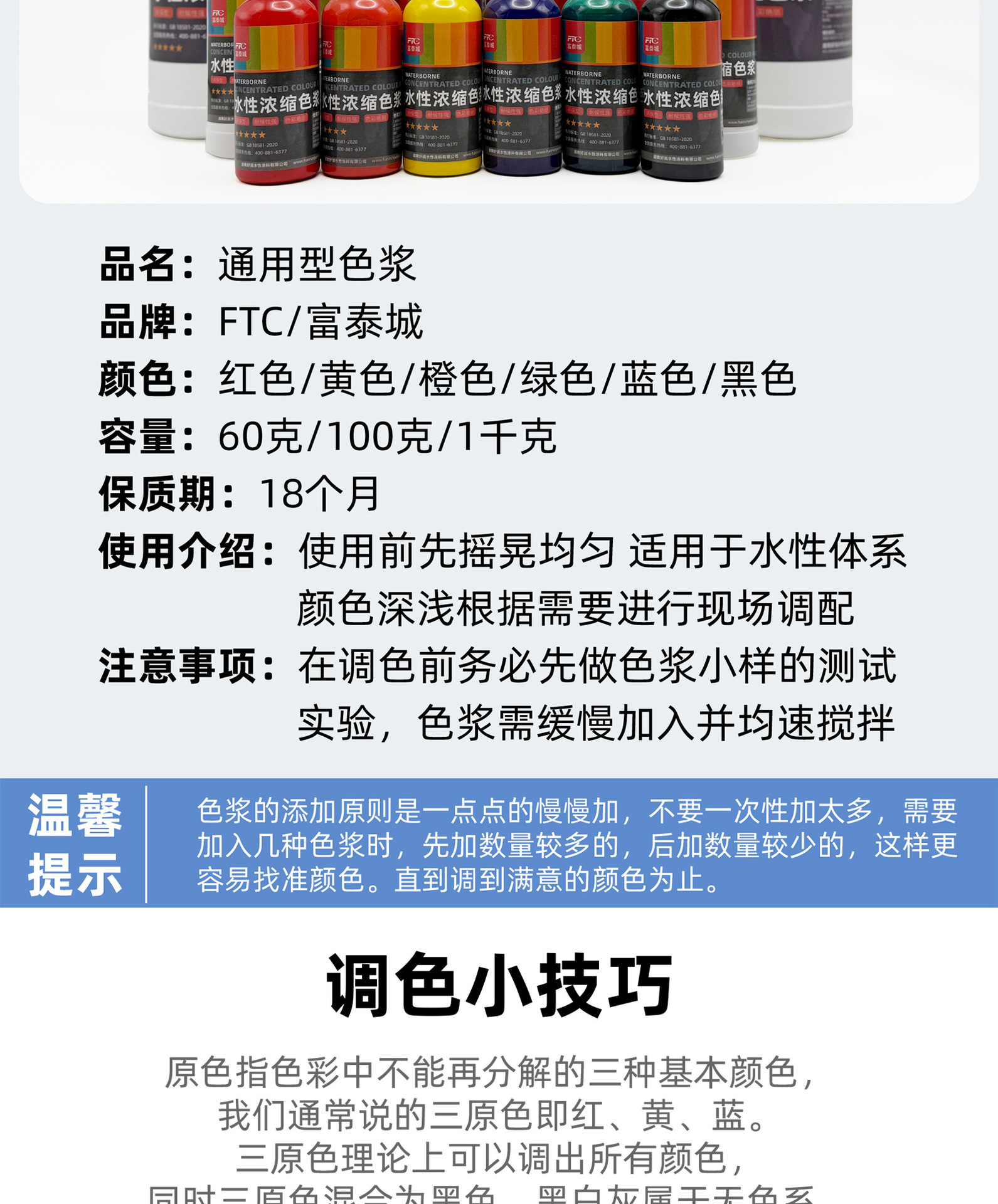 内外墙环保色浆全规格色浆 高浓度水性色浆乳胶漆墙固调色高浓缩