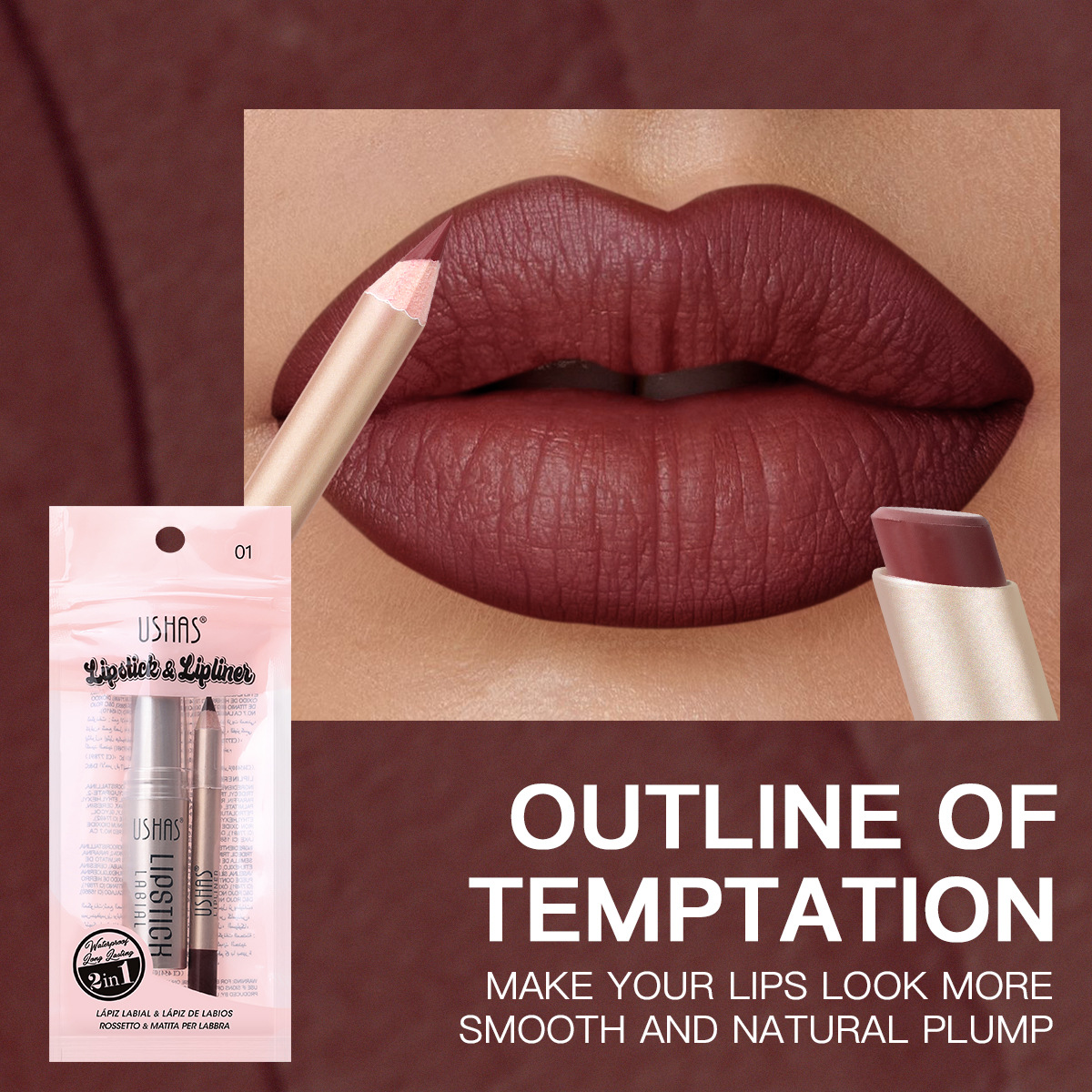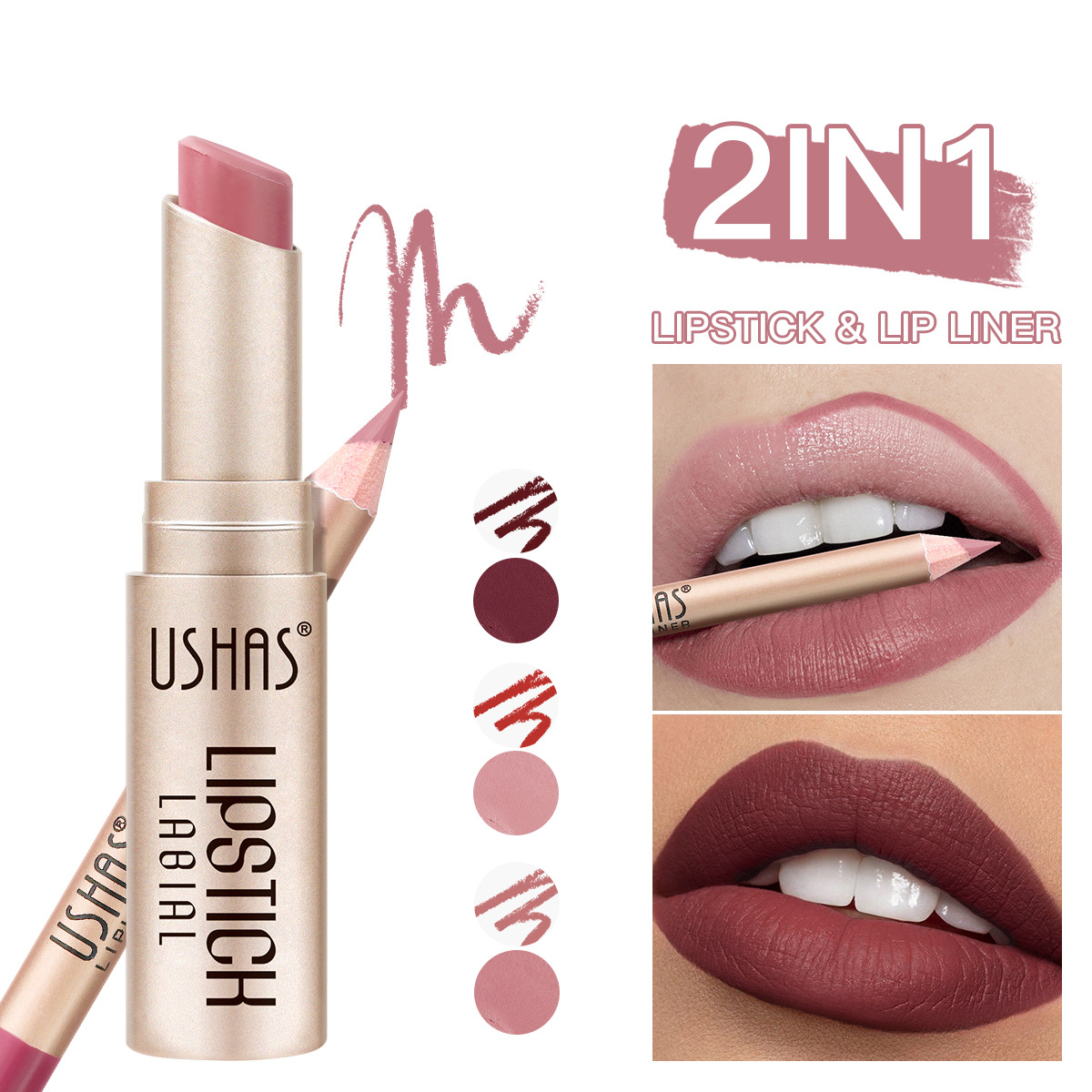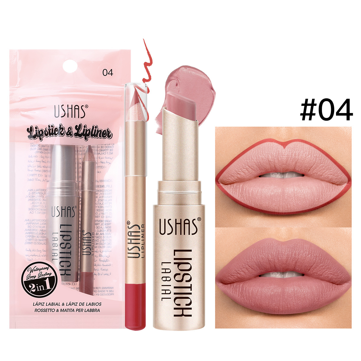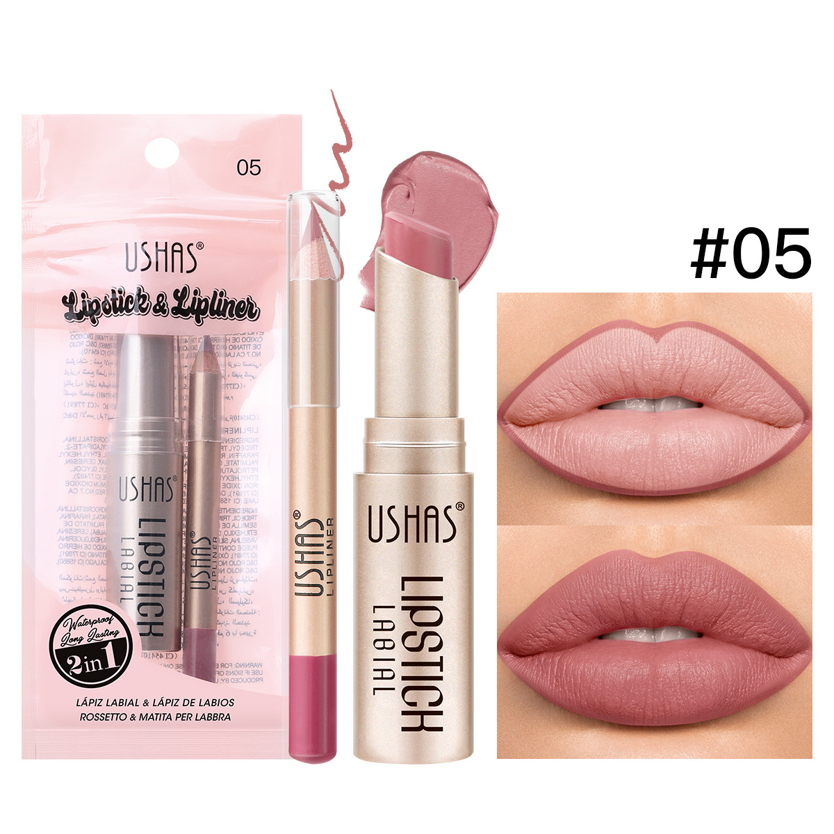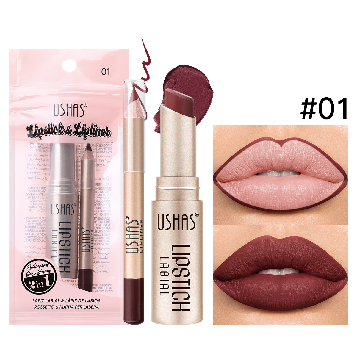 USHAS欧美跨境现货口红+唇线笔套装持久防水不沾杯口红套装US011
