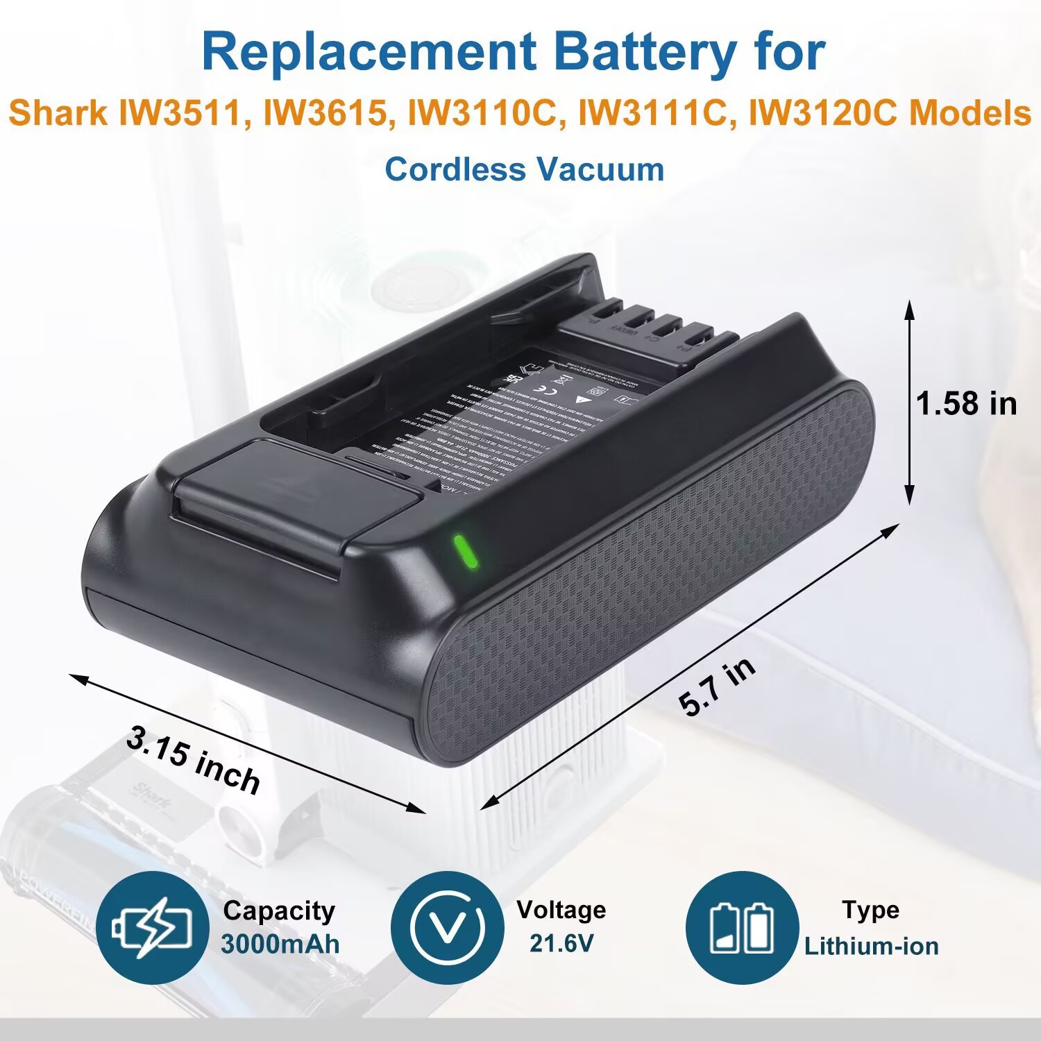 Shark/Shark IW3511、XBTR625KS、XBTR625KDCEU 掃除機バッテリー用