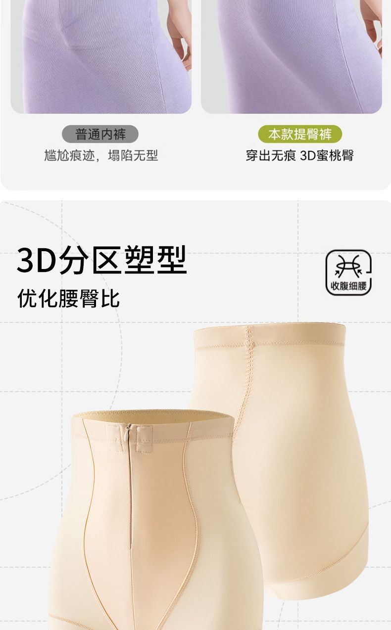 冰丝拉链塑形收腹裤提臀裤收小肚子强力收胯翘臀产后高腰内裤女