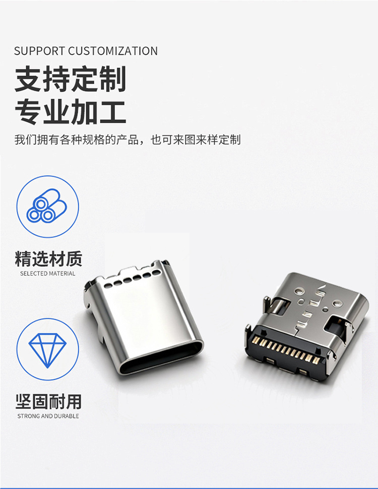 USB3.1TYPE-C24P オンボードメスソケット、フロントプラグ、リアプラグ、4ピンプラグボード、SMT+DIPフルピン、スプリング付き
