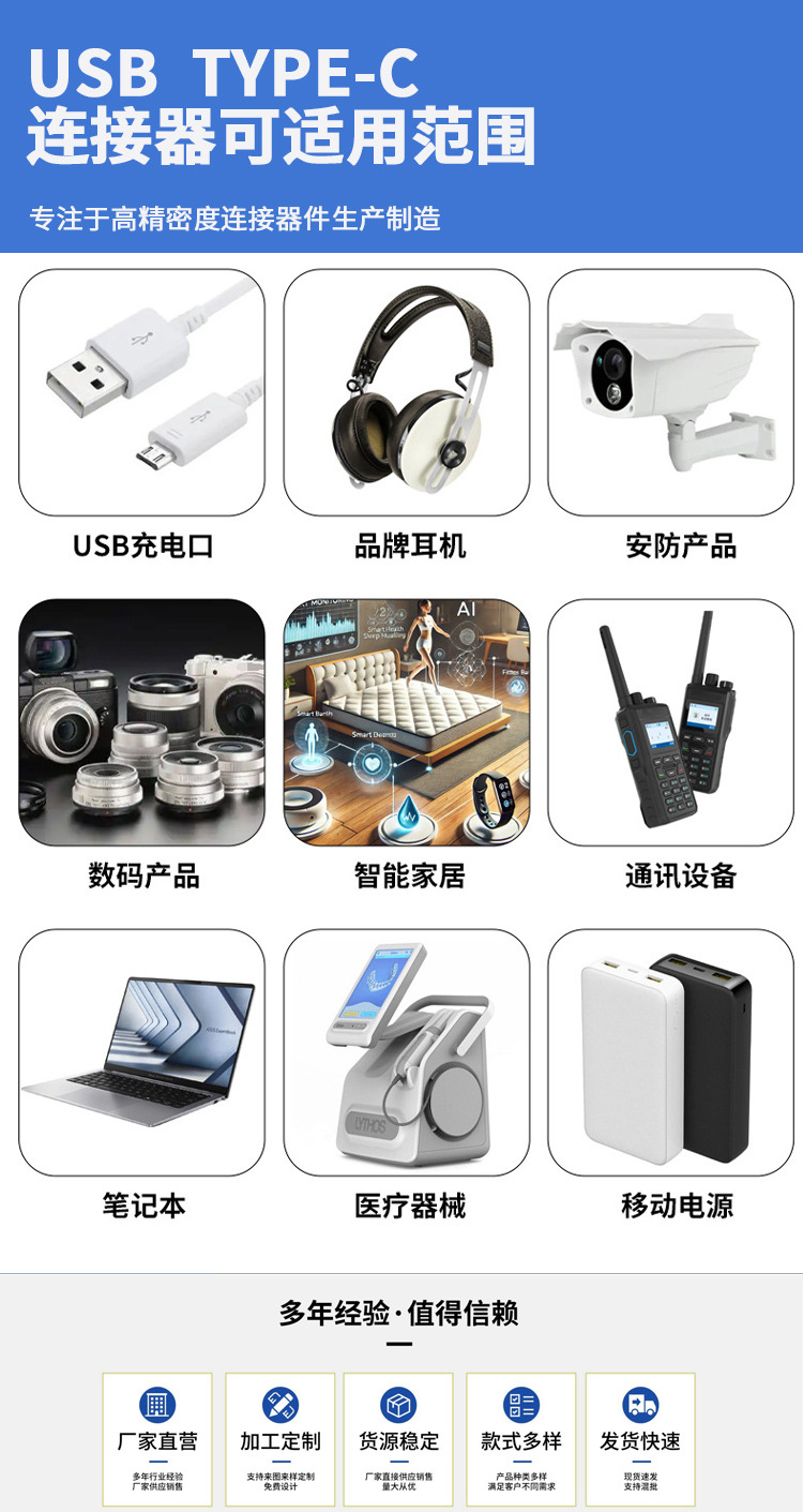 USBTYPE-Cチッププラス高母座6p板上型パッド高さ1.0/1.6/2.0四脚ボードSMT