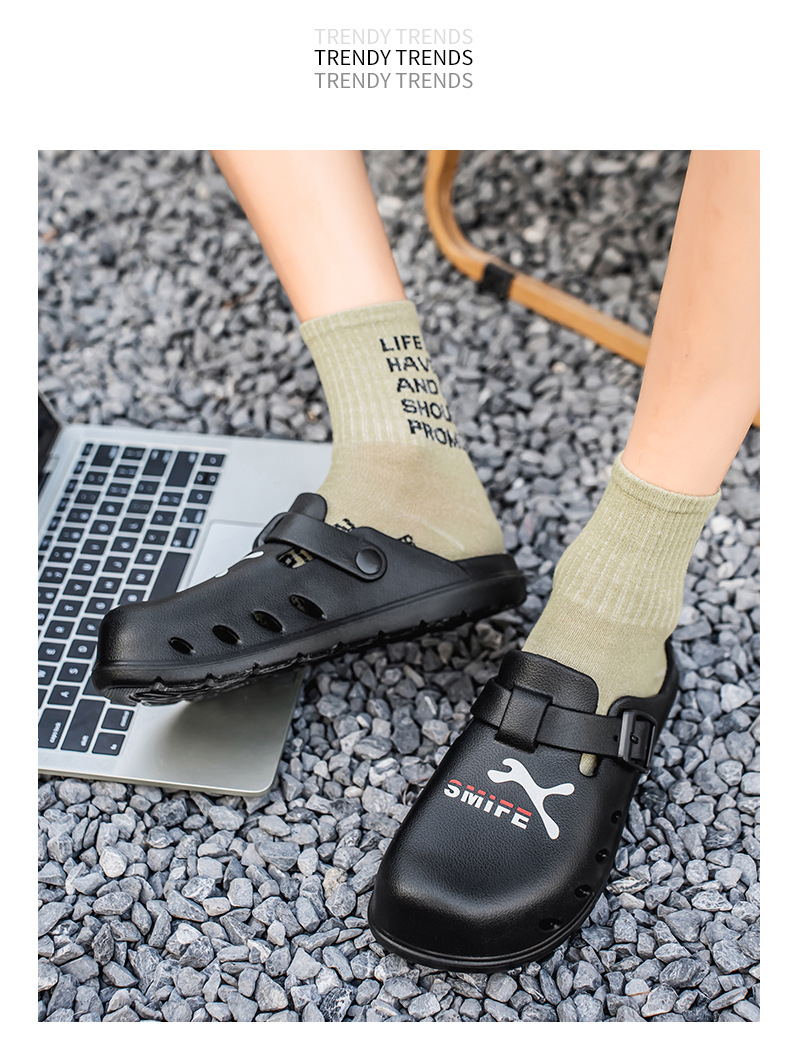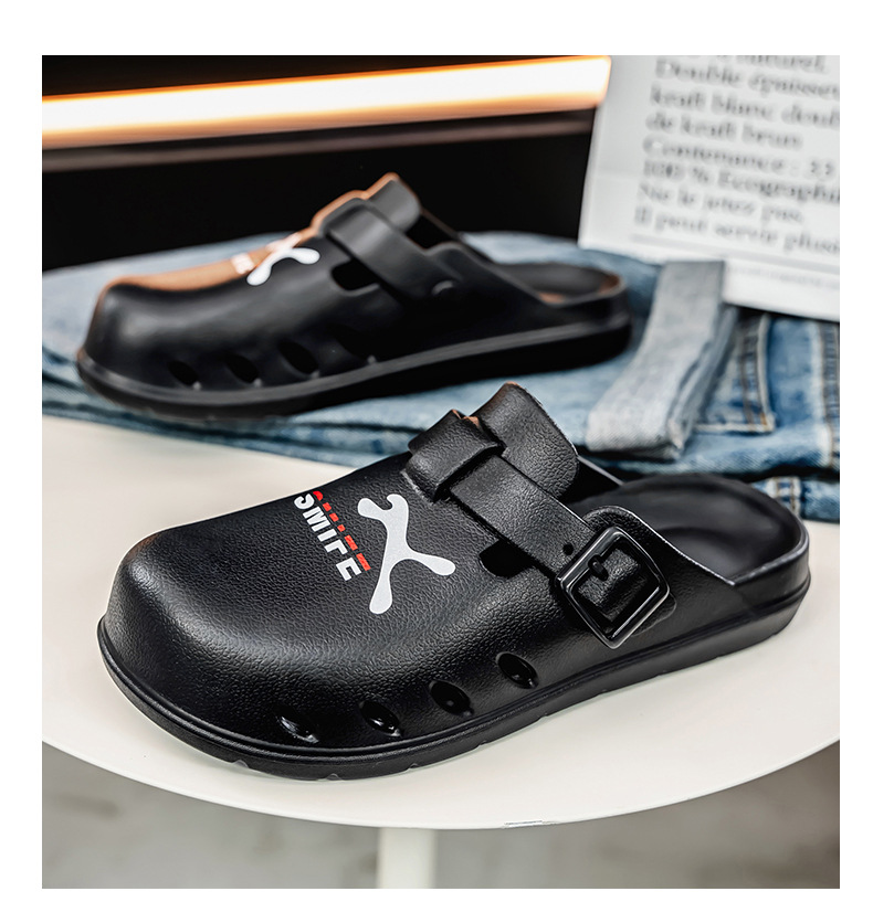 軽量高級デザイナーズモデル2025年夏向け高品質通気性ボーケン風ハーフスリッポンメンズシューズ、裏起毛付き豆豆シューズ
