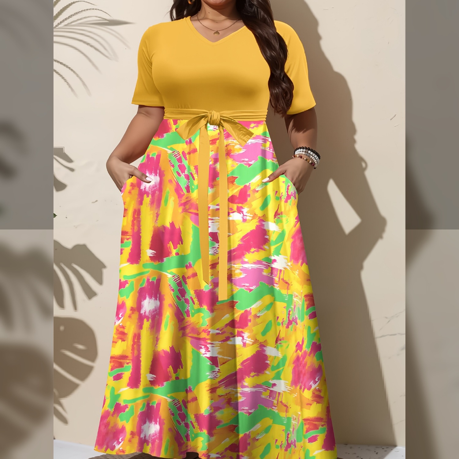 2025春夏跨境专供外贸现货大码女装热带印花连衣裙工厂现货批发