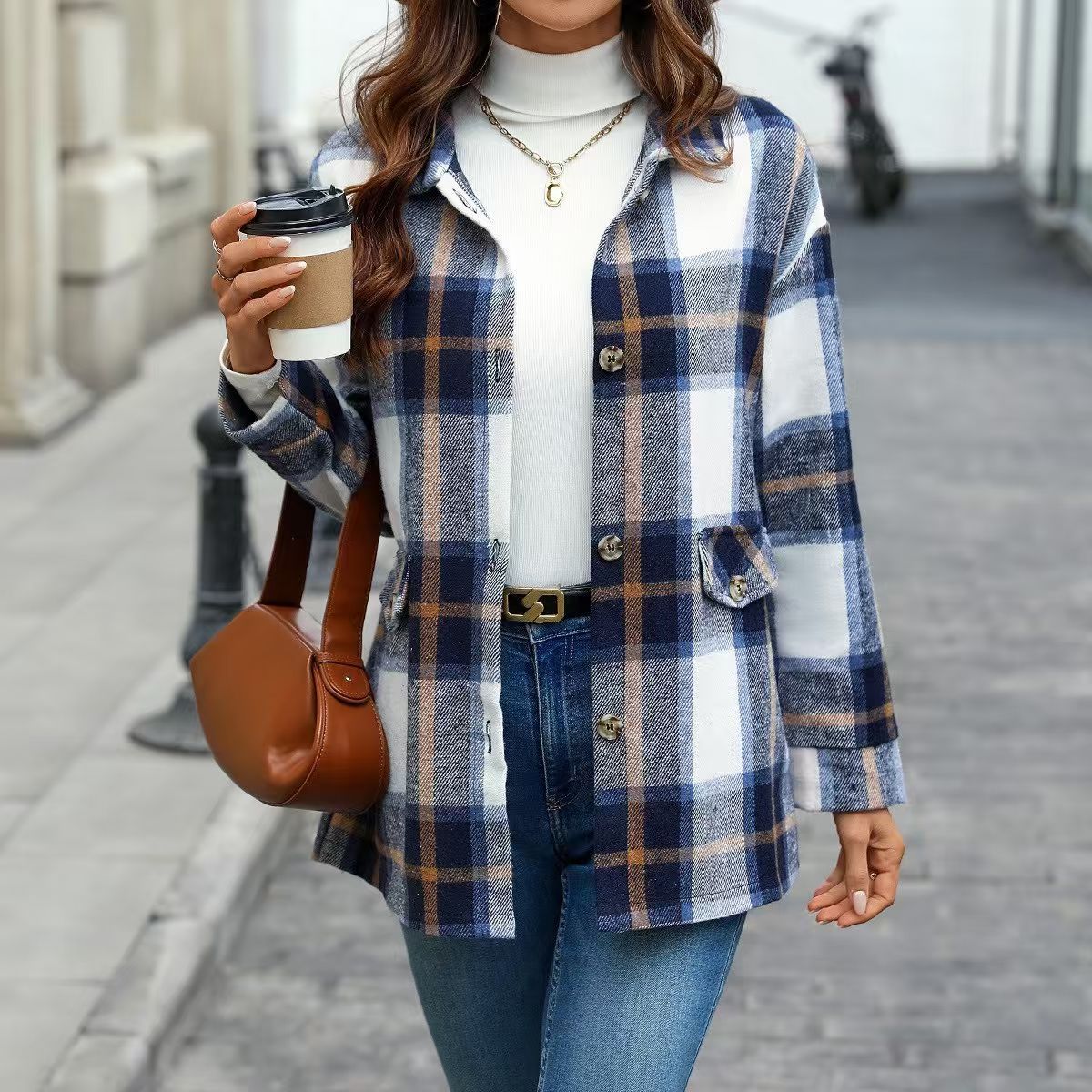 跨境外贸欧美女装外套2025秋冬季红色格子加厚开衫亚马逊外穿上衣