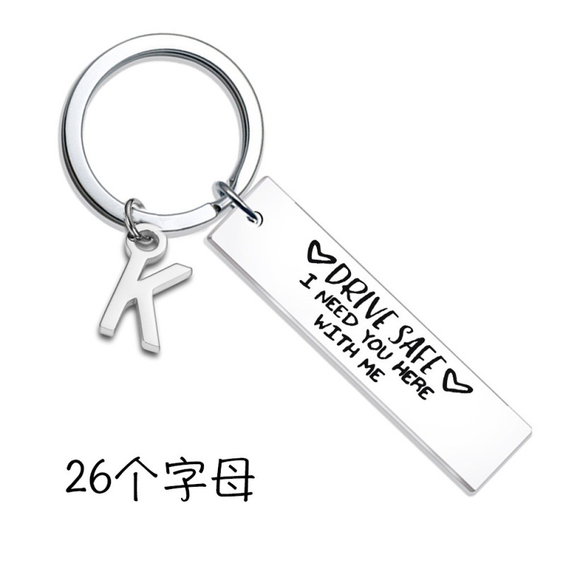 26アルファベットステンレスキーホルダーdrive safeキーチェーン自動車キー夫運転手アクセサリー