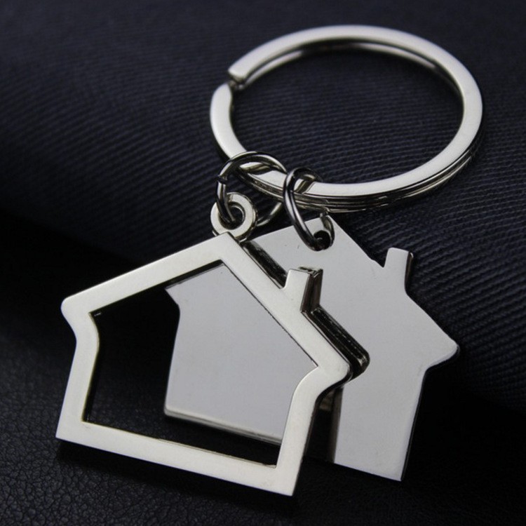 ステンレス製の家の形をしたキーホルダー、金属製のキーチェーン、不動産販売促進用の小さなギフト、刻印入りペンダント、子供の日のギフト