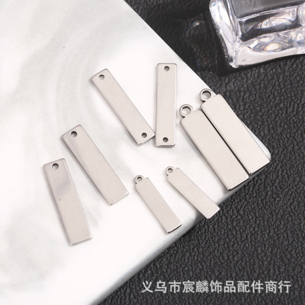 クロスボーダーDIY彫刻キーホルダー12*50mm鏡面ステンレス単孔長方形長条ペンダント