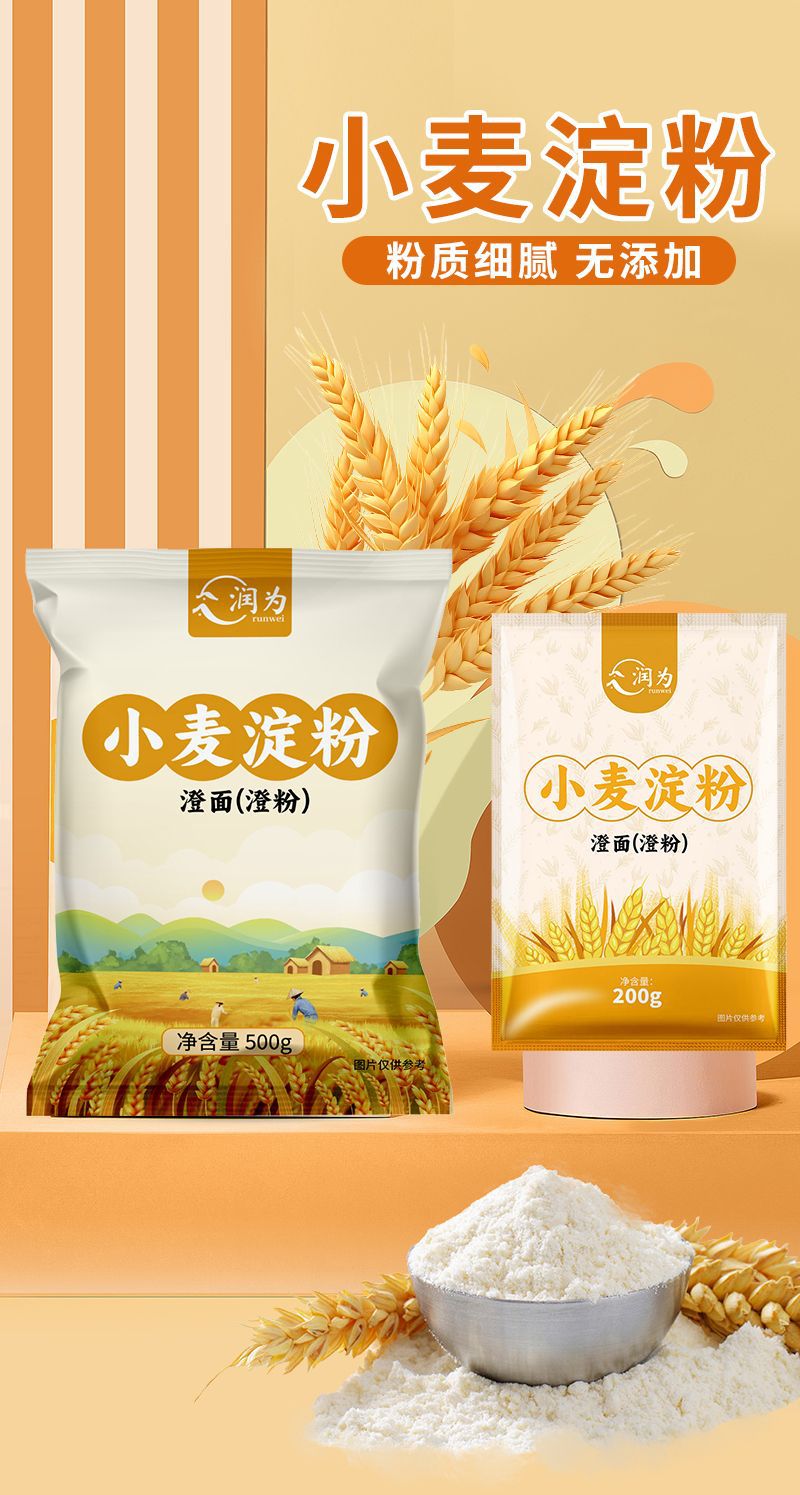 Runwei 純小麦澱粉麺澱粉コールドスキンクリスタル餃子家庭用大型バッグ雪肌月餅原料小袋
