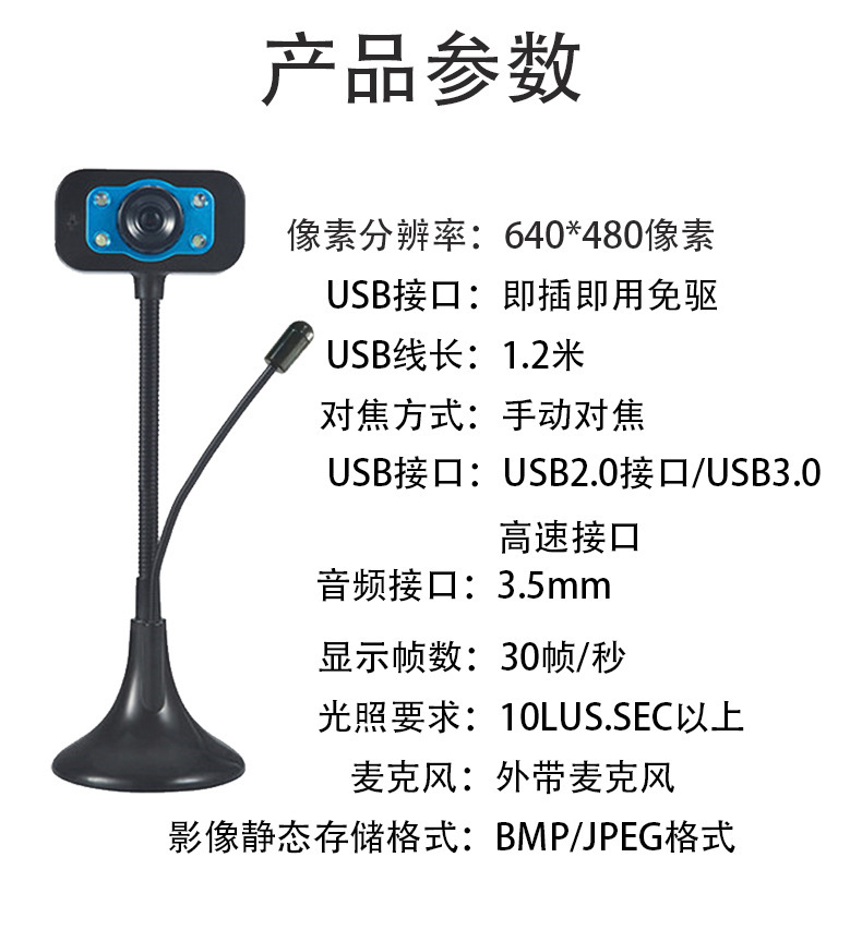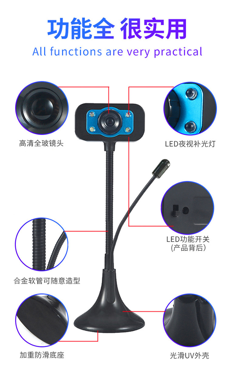 站立式网课教学usb摄像头 笔记本台式机电脑一体机外接视频高清