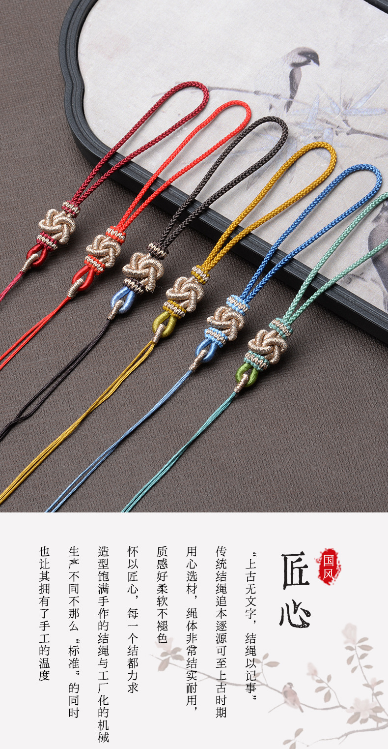 同心結び目コンパクト吊りロープ半完成アクセサリー diy 中国結び目和天翡翠ペンダントロープ手織り携帯電話ロープ