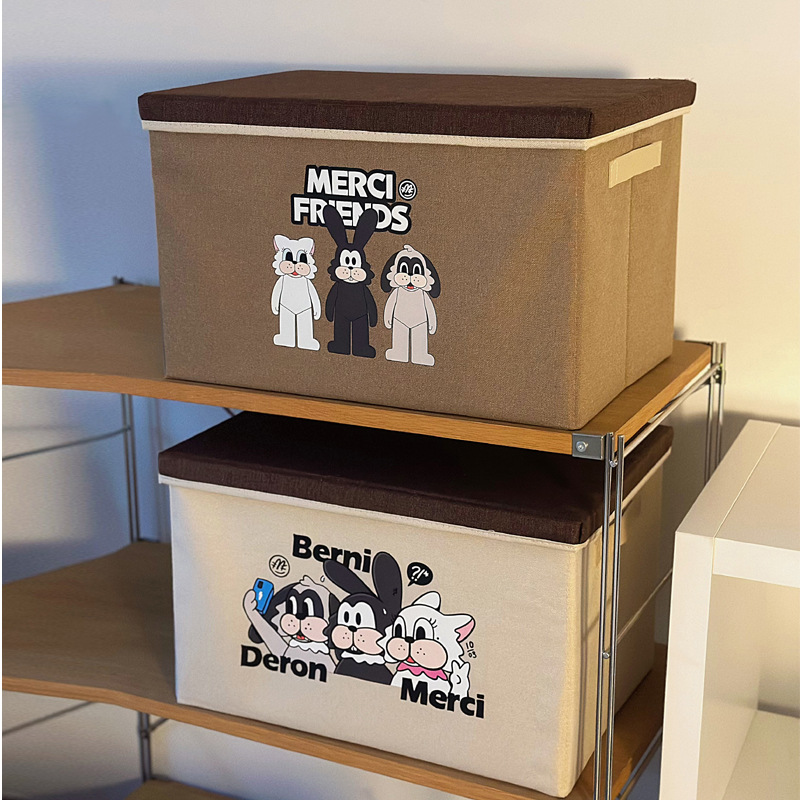 漫画折りたたみ式防塵収納ボックス蓋付き衣類おもちゃ収納ボックス寮車スナックデスクトップ収納ボックス