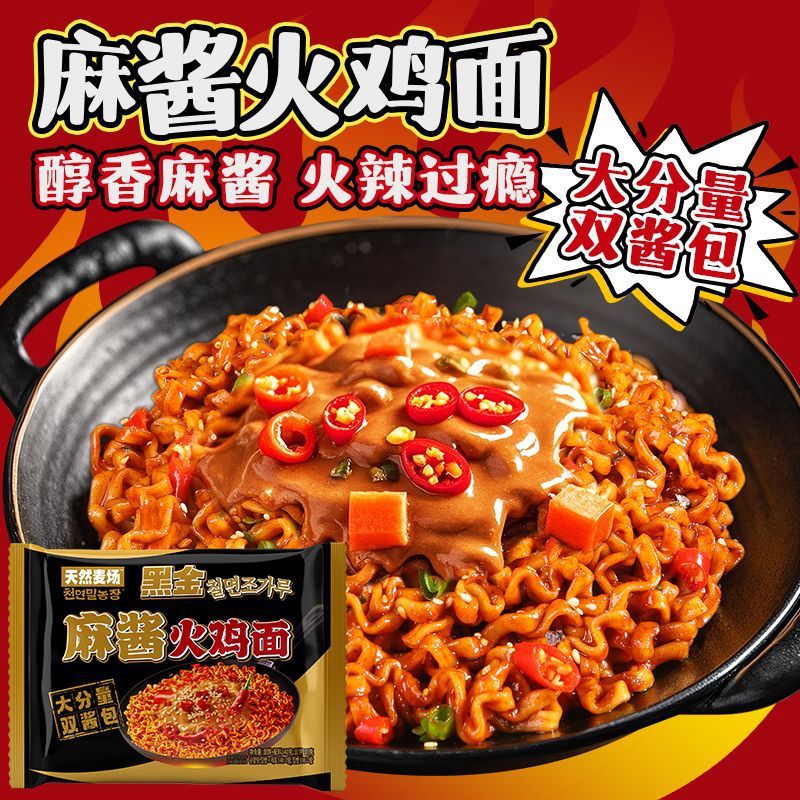 哇塞麻酱火鸡面黑金版天然麦场韩式泡面夜宵速食宿舍零食双酱包
