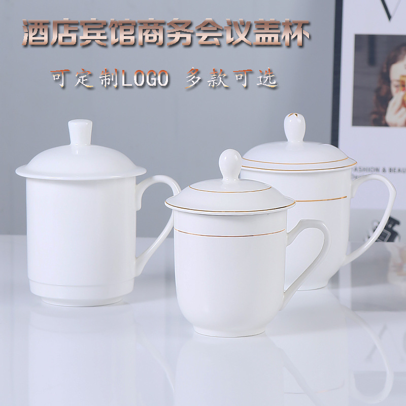 陶瓷茶杯带盖办公室酒店宾馆客房专用水杯金边会议接待杯子印字