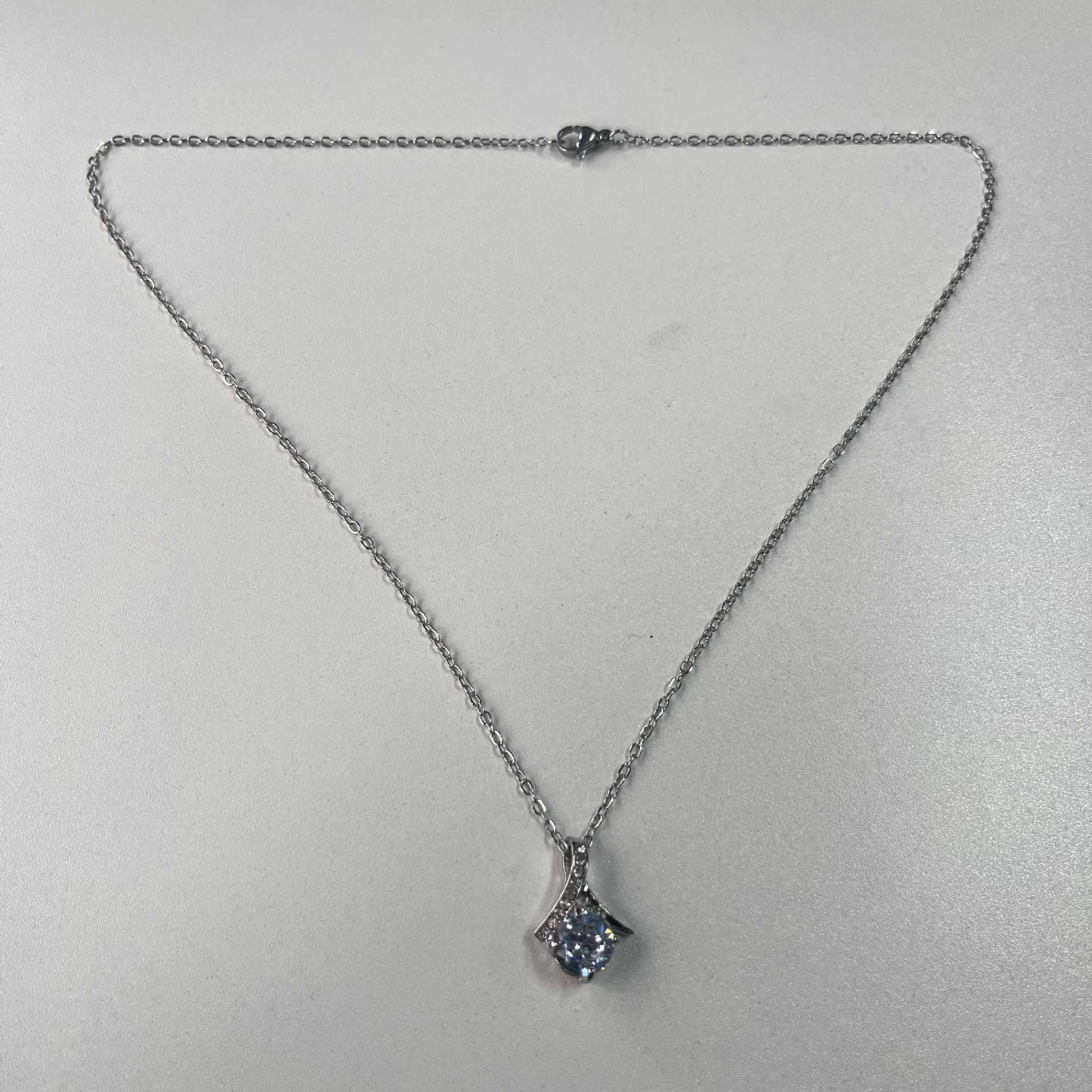 材质:不锈钢链,铜吊坠,玻璃锆石